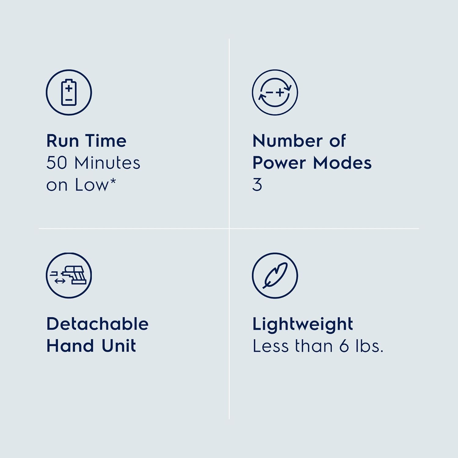 • Long-Lasting Cordless Power: Enjoy up to 50 minutes*** of run time; Set your vacuum to Auto Mode, which automatically adapts the vacuum's suction power depending on the floor type, making it ideal for multi-surface cleaning and maximizing run time