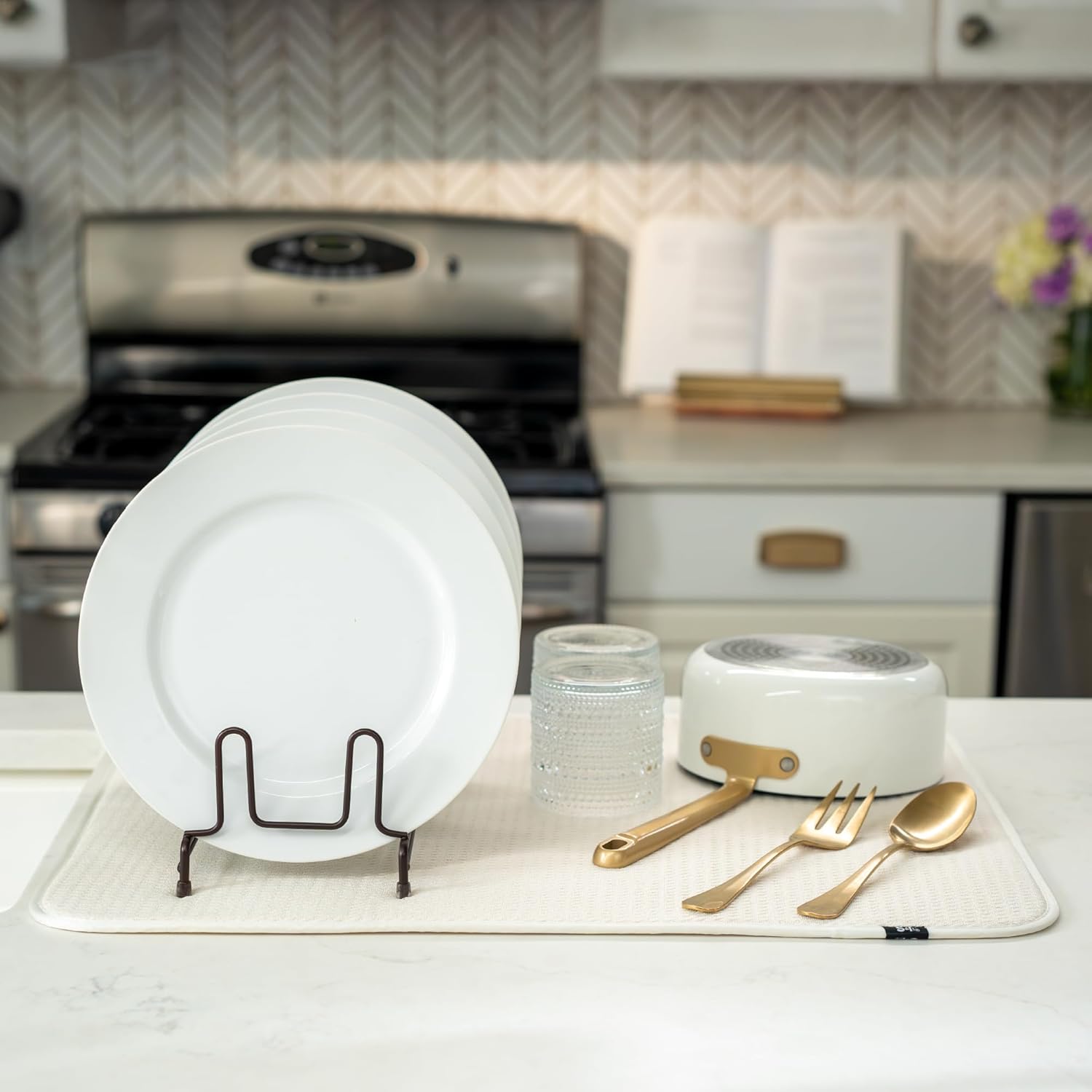 • Dish drying mats for kitchen counter are reusable, machine washable, and easy to store for kitchen organization; durable construction will not chip or break like a stone dish drying mat for kitchen