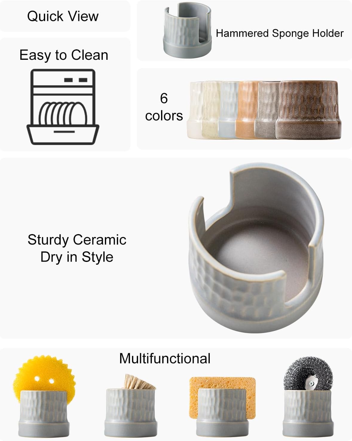 • Sturdy: The sponge rack is made of high quality ceramic material with a certain weight, and the base has a non-slip design to ensure that it does not easily move and cause mess when in use. it's simple to clean with just a quick rinse or a wipe-down. Enjoy a spotless sink area with minimal effort