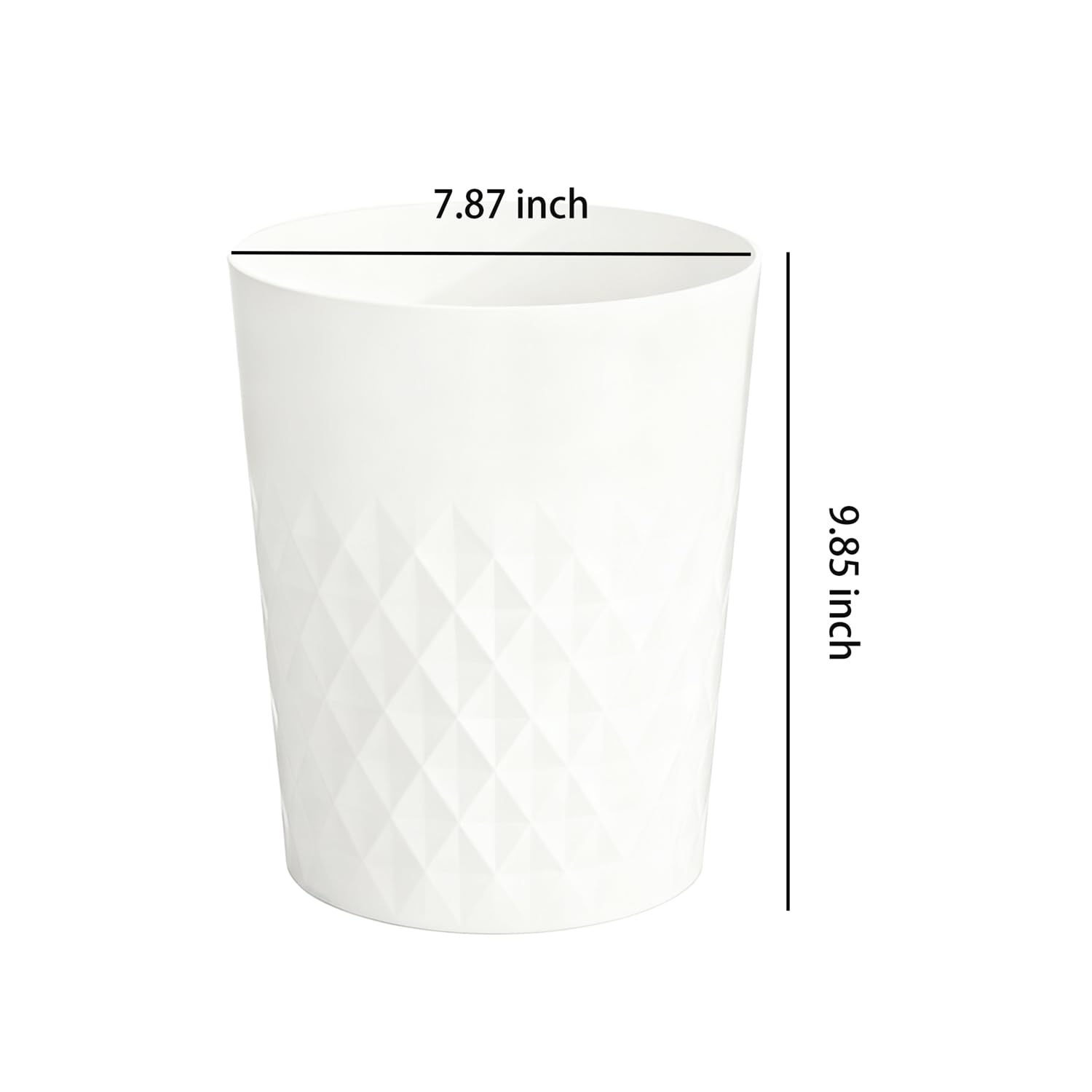 • Bathroom Trash Can: measures: 7.87" diameter x 9.85" high, 1.8 gallon/ 6.8 liter capacity.Great for bathroom, kitchen, office, condos, dorm rooms, cabins, campers, RVs and apartments.