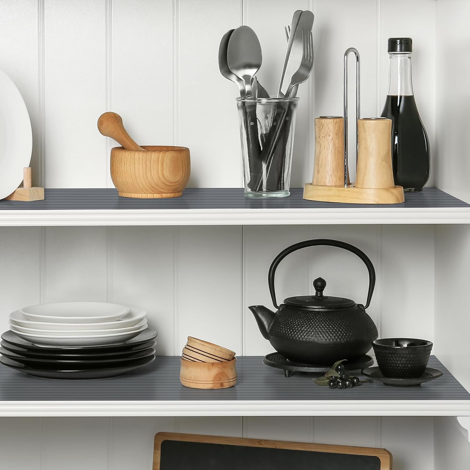 Shelf Liners for Kitchen Cabinets Drawer Liner Non Adhesive Cupboard Mat EVA Material Waterproof Refrigerator Mats Washable Fridge Liner for Cupboard and Desks Liner Gray 11.8 x 118 Inches