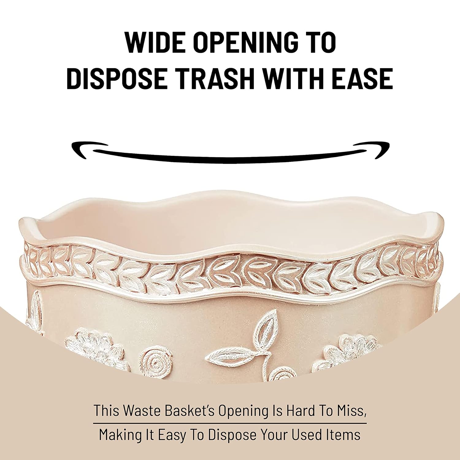 Zahari Home Decorative Trash Can for Bathroom, Office & Bedroom - 2.1 Gallons Stylish & Small Trash Can for Dorms, Desktop & Restroom - Chic Waste Basket for Compact Spaces, Rose Vine