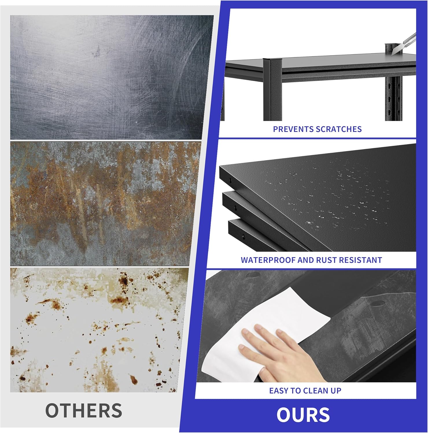 • 【RUST-PROOF, SCRATCH-PROOF, EASY-TO-CLEAN HEAVY DUTY SHELF】The garage shelving is treated with anti-rust spray paint, the metal material and special surface treatment can prevent the rust problem caused by the humid environment; the smooth metal surface design makes this shelf very easy to clean and take care of daily. Each shelf is equipped with protective pads to protect floors from damage.