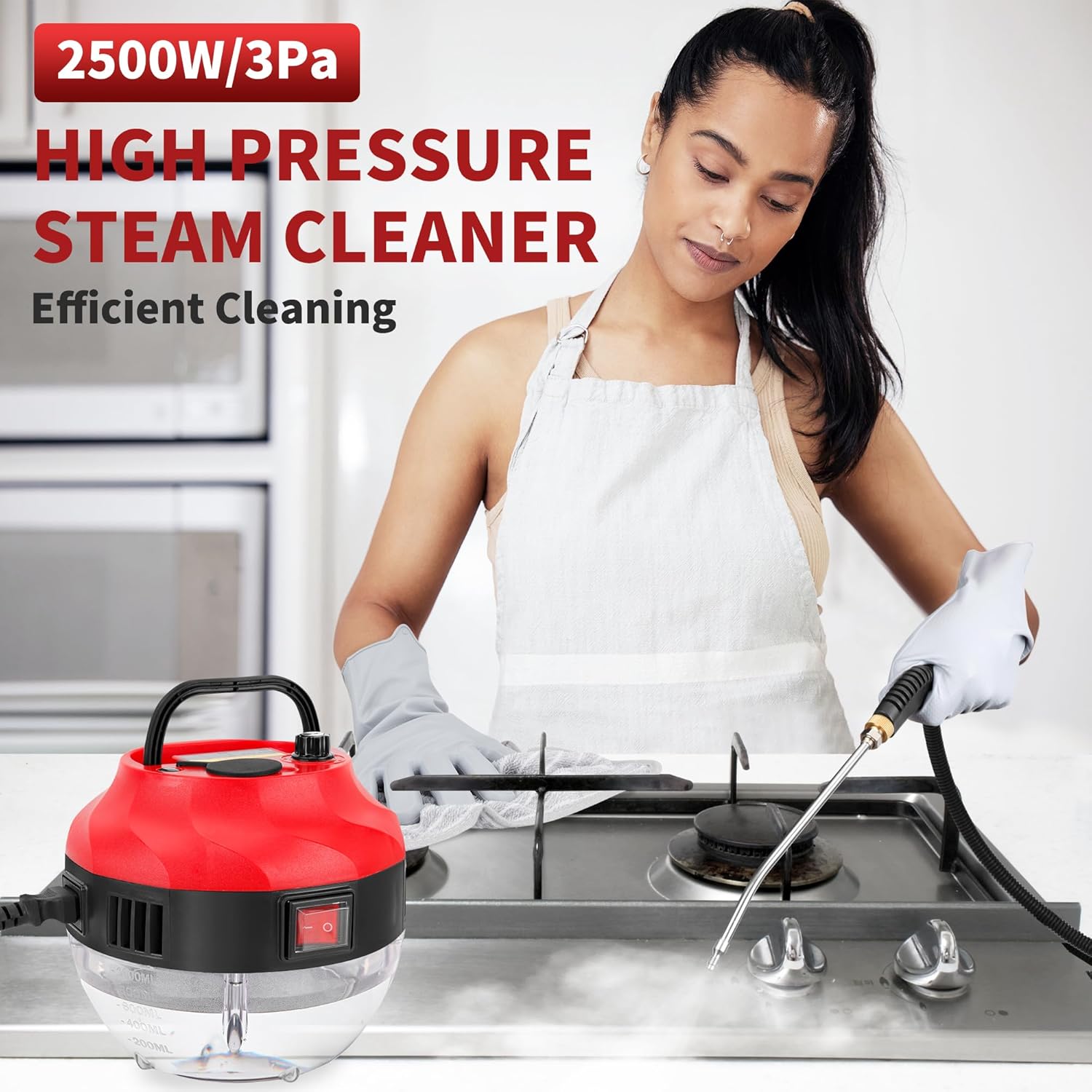 • 🛡️【Powerful Steamer for Cleaning】With 2500W power, this electric handheld steam cleaner generates high pressure steam up to 105°C/221°F in 15 seconds, which can easily deep clean and remove the stubborn greasy, dirt, dust and stains on various surfaces, effectively helping you to complete the daily cleaning tasks of your house.It saves more water than traditional hand wash cleaning.