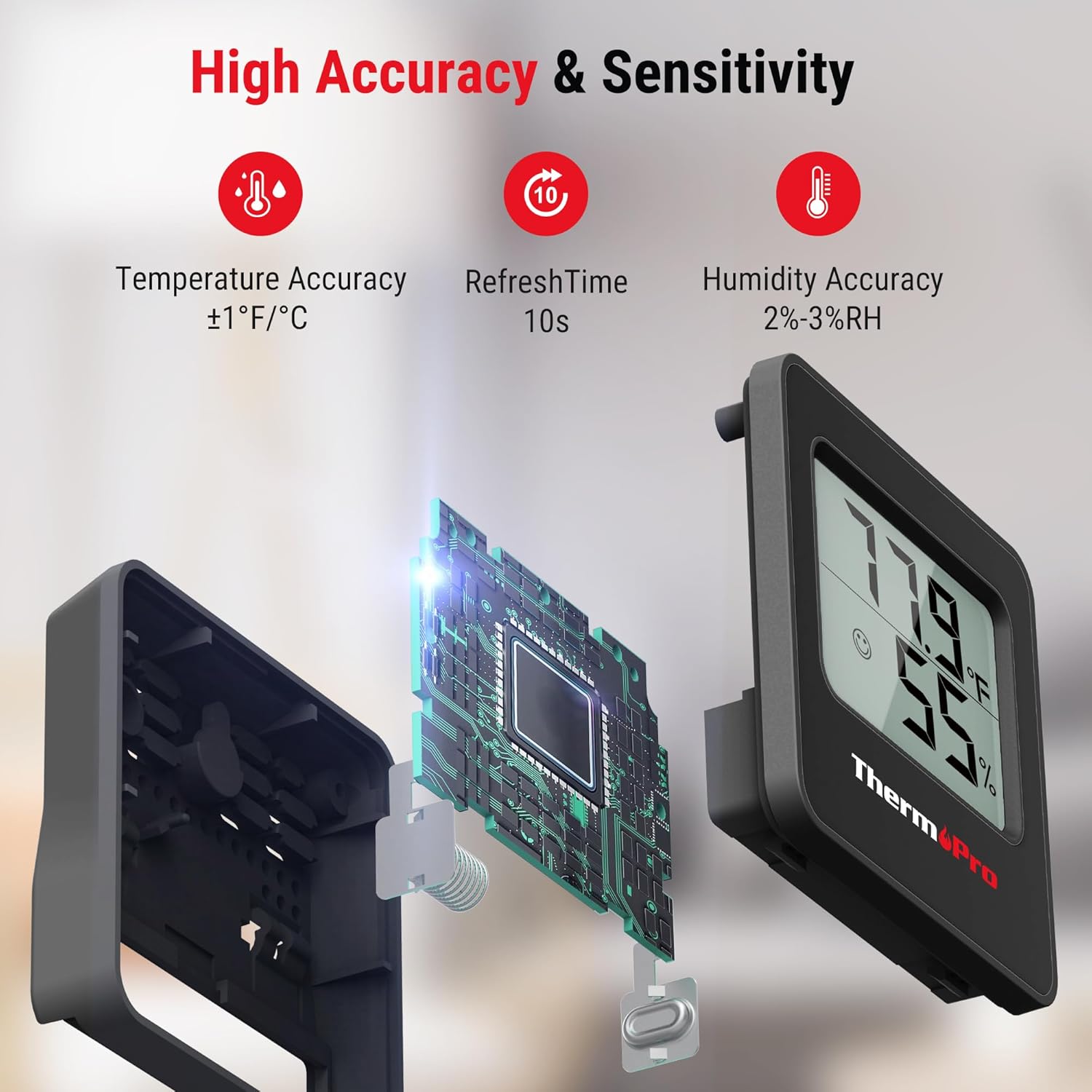 • High Accuracy & Fast Refresh Rate: Indoor thermometer and humidity gauge is equipped with a high-performance humidity temperature sensor with an accuracy of up to +/-1℉ and 2%-3%RH, and a refresh rate up to 10s, allowing you to adjust humidistat in time