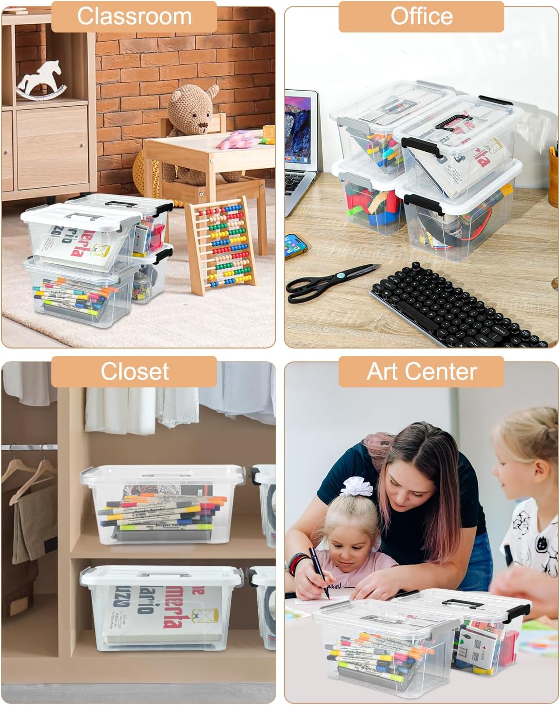 NUMIFUN Plastic Storage Bins With Lids 6 Pack Storage Organizer Bins, 7 Quart Stackable Storage Bins with Lids and Black Handle Buckle Easy for Home Office Organization, White Lids