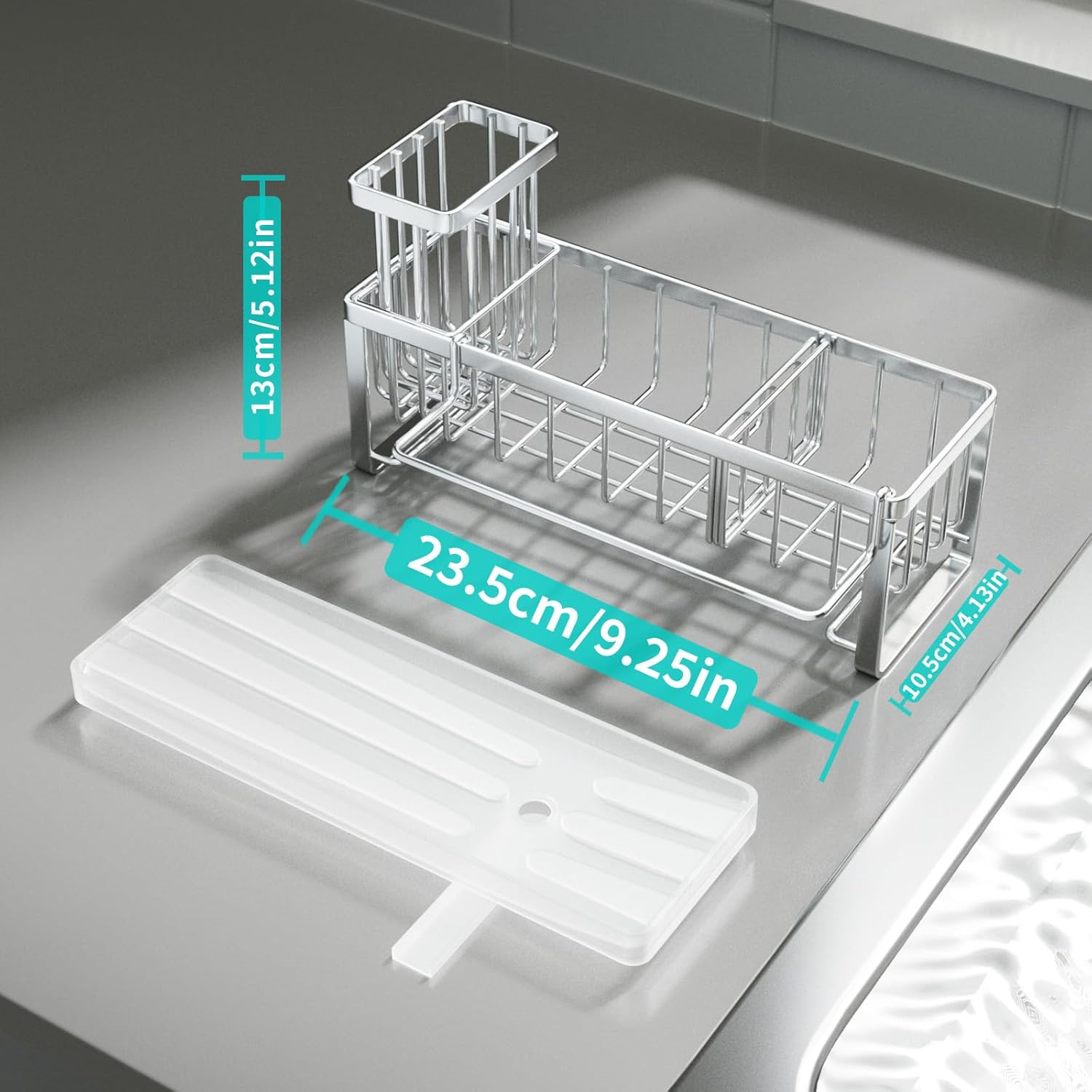 • [Reasonable Size & Support]: The size of our sink organizer is 9.25*4.13*5.12 inches. Our sponge caddy for kitchen sink can meet your daily needs well. If you are not satisfied with this sink caddy kitchen sink organizer, please reach out to us