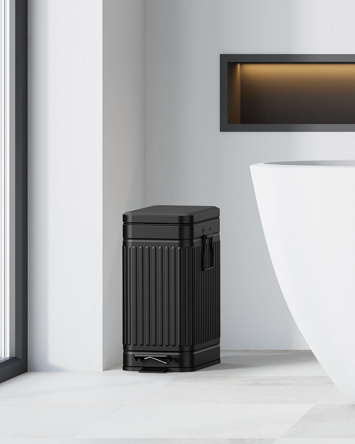 • High Quality: The trash cans are made from stainless steel, rust and fingerprint-proof; The matte embossed finish results in a stylish and modern design for bathroom, bedroom, office, toilet, dorm
