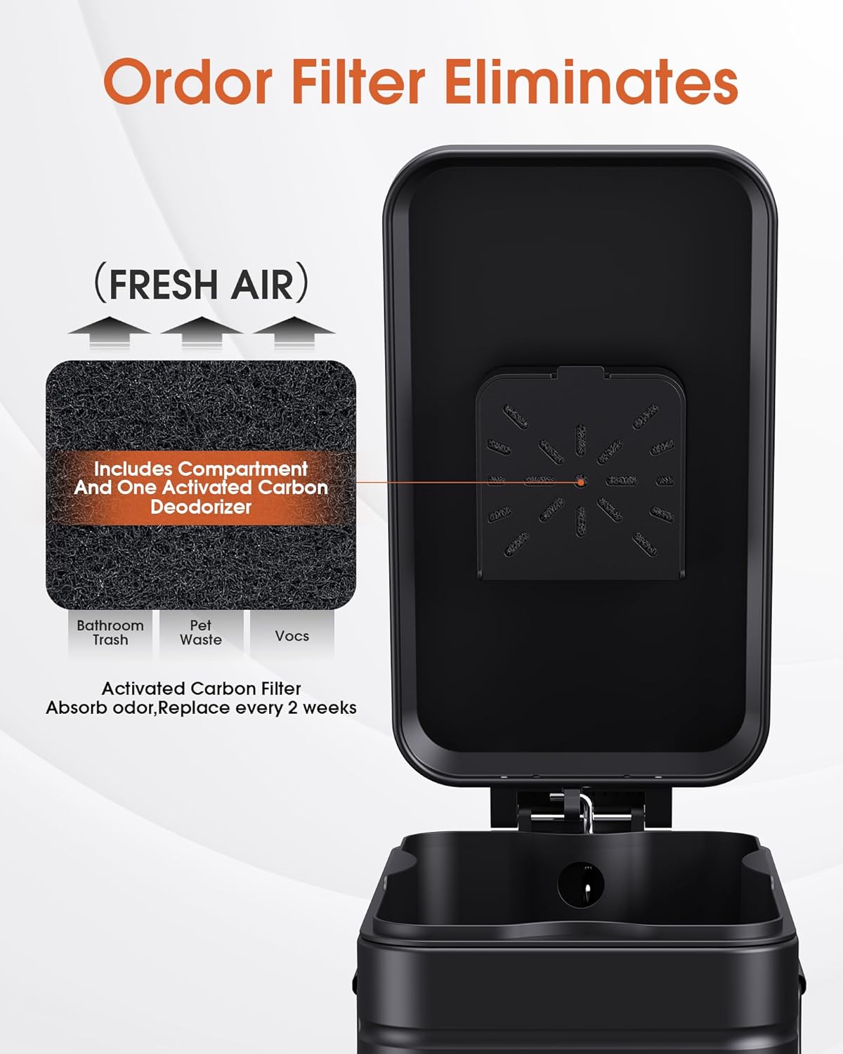 • Odor-Free: The Odor Control trash can included compartment and activated carbon deodorizer absorbs waste odors, 360° sealed space prevents odors from escaping from the can, making your space cleaner