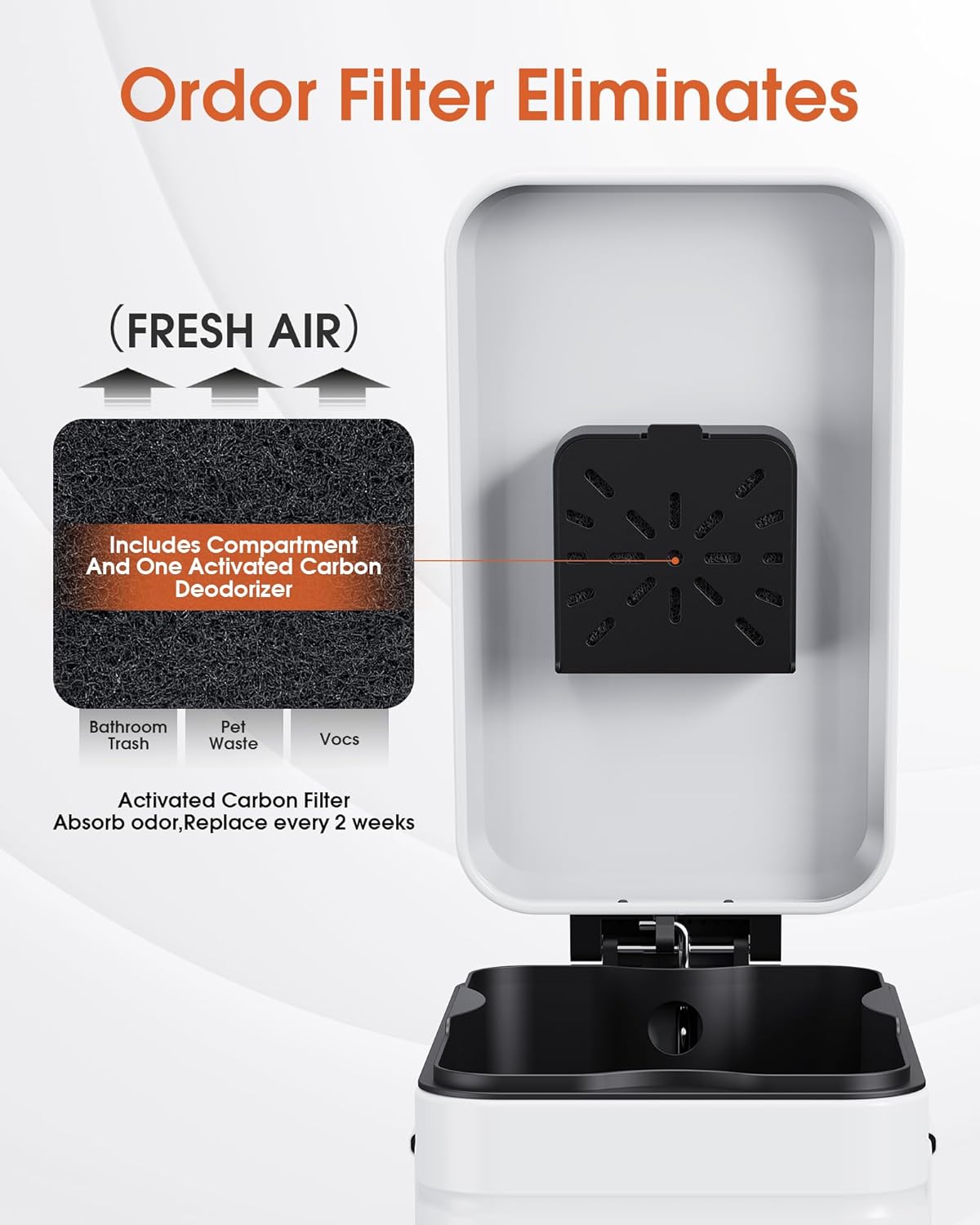 • Odor-Free: The Odor Control trash can included compartment and activated carbon deodorizer absorbs waste odors, 360° sealed space prevents odors from escaping from the can, making your space cleaner