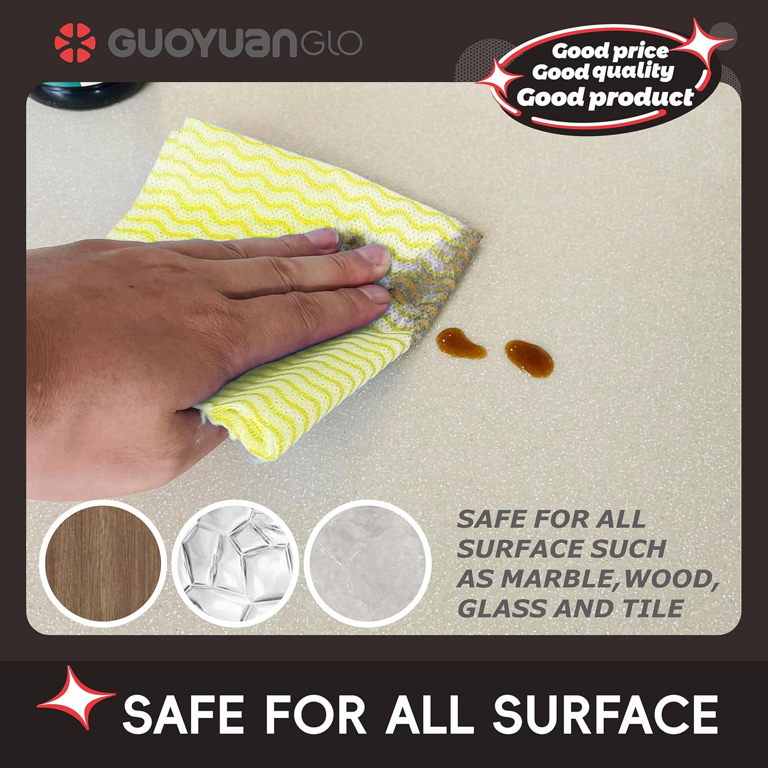 • Unlike regular cotton dishcloths, these non-woven fabric dish cloths have unique texture design, which makes them easy to clean and fast drying stink free