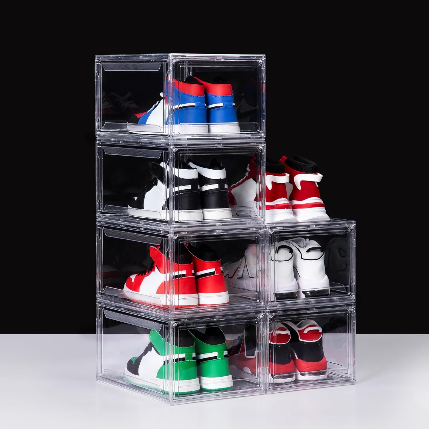 • Clear Acrylic Shoe Boxes: This Shoe Storage Box made from transparent acrylic allows a full view of your collection. Dustproof and waterproof, the shoe storage organizer features a front-opening magnetic door, making it easy to access and store your shoe boxes while keeping them protected.