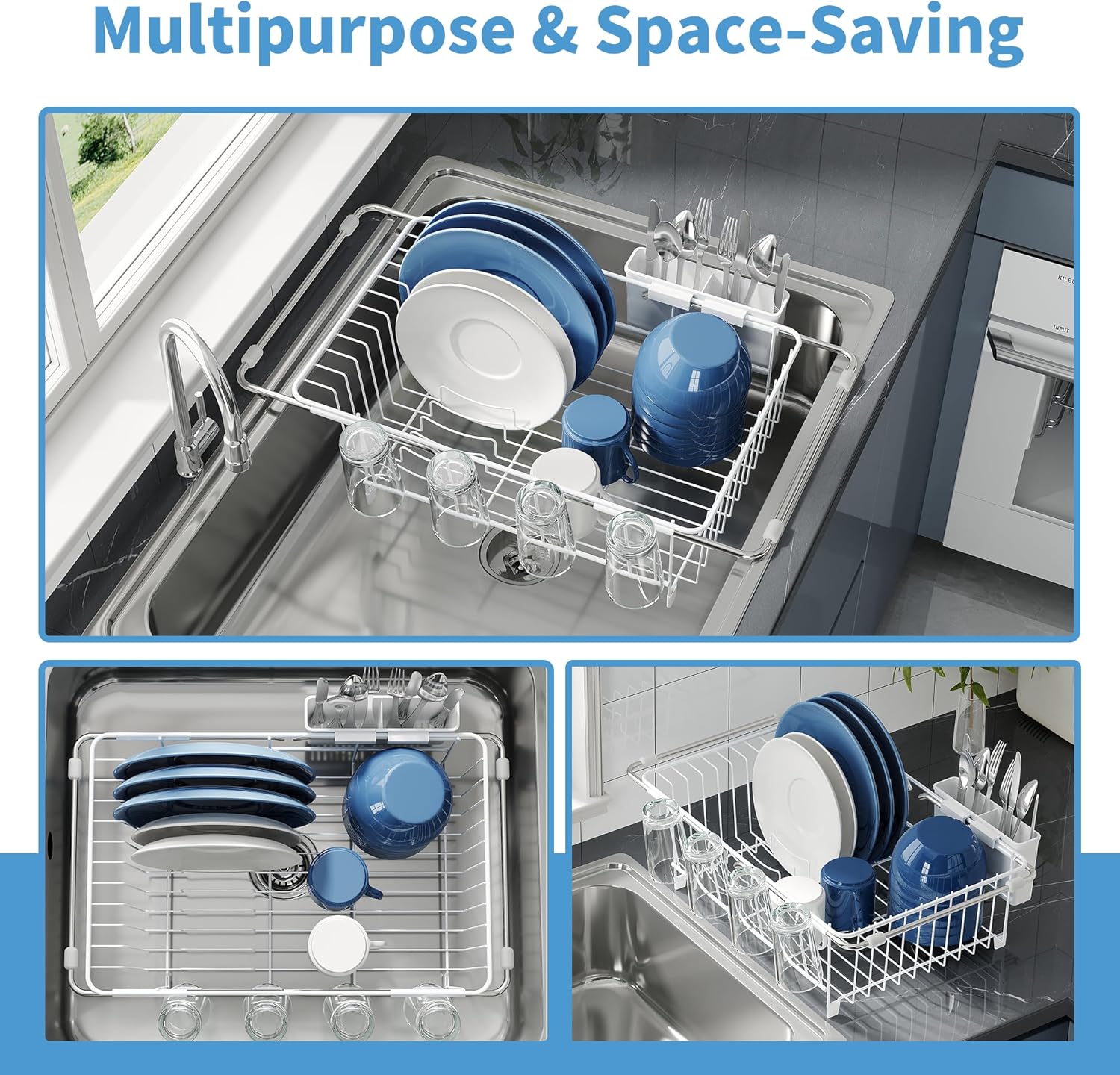 • Used for 3 Scenarios: This dish drying rack expands for use on the countertop, in-sink or over-sink