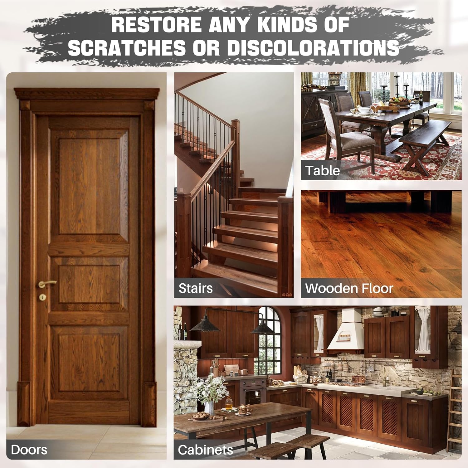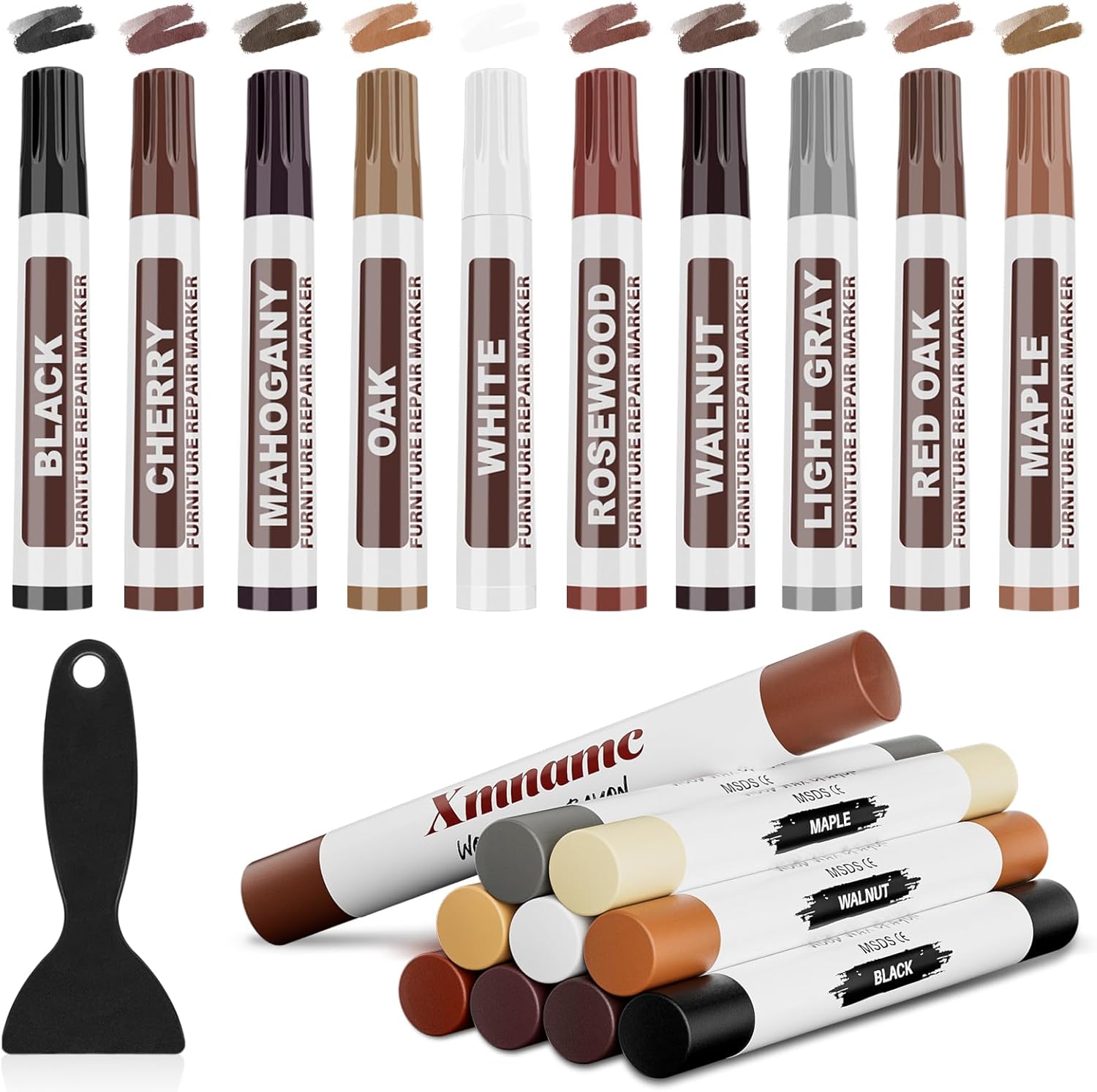 • Wide Applications: The wood crayons and wood touch-up markers can quickly repair scratches, cracks, and holes on wooden furniture, floors, cabinets, tables, doors, and frames. Using a furniture repair kit for home restoration is an easy and efficient method.