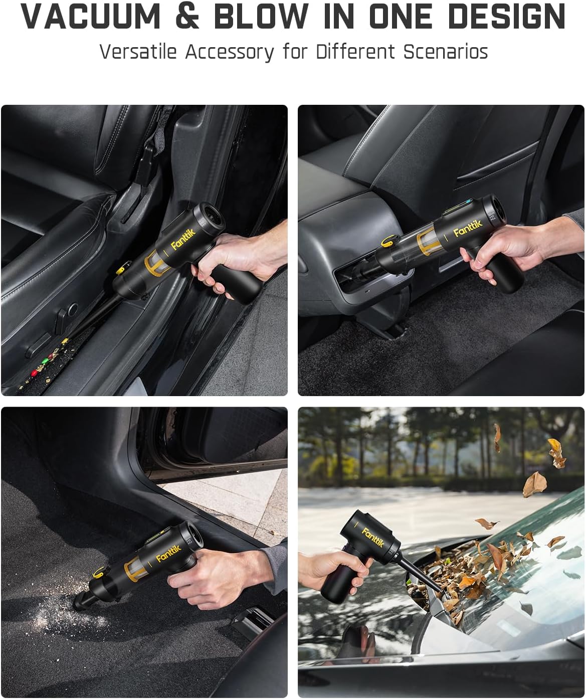 • Note: This car vacuum is compact which is not suitable for cleaning large areas. It is suitable for cleaning the details of the car interior as well as indoor detail cleaning, office desk, computer keyboard dust