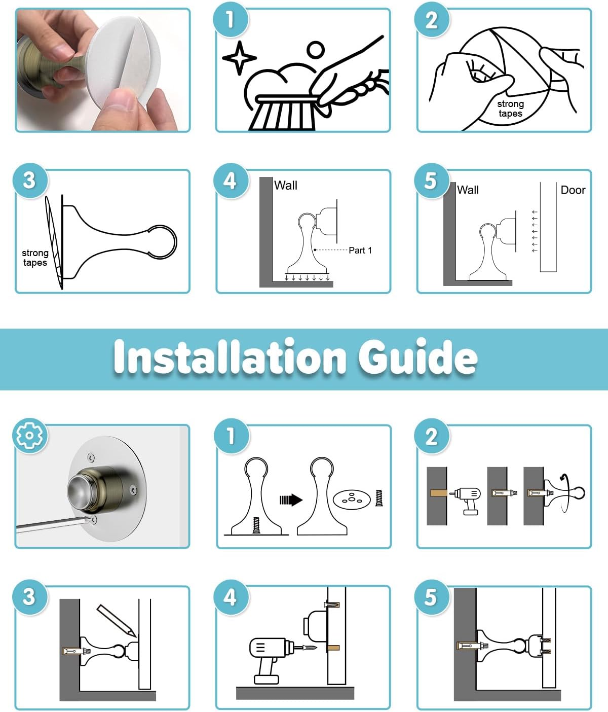 • [Simple Setup & Durable Construction] Effortlessly install your HELEMAN Magnetic Door Stopper, perfect for door stoppers for wall and bottom of door, with screw-in or no-drill strong adhesive options. Crafted from premium stainless steel, these magnet door stops ensure long-lasting durability, having passed rigorous tests (10,000 times) to guarantee reliability. Ideal for any setting, they represent a smart, robust solution for keeping doors securely in place