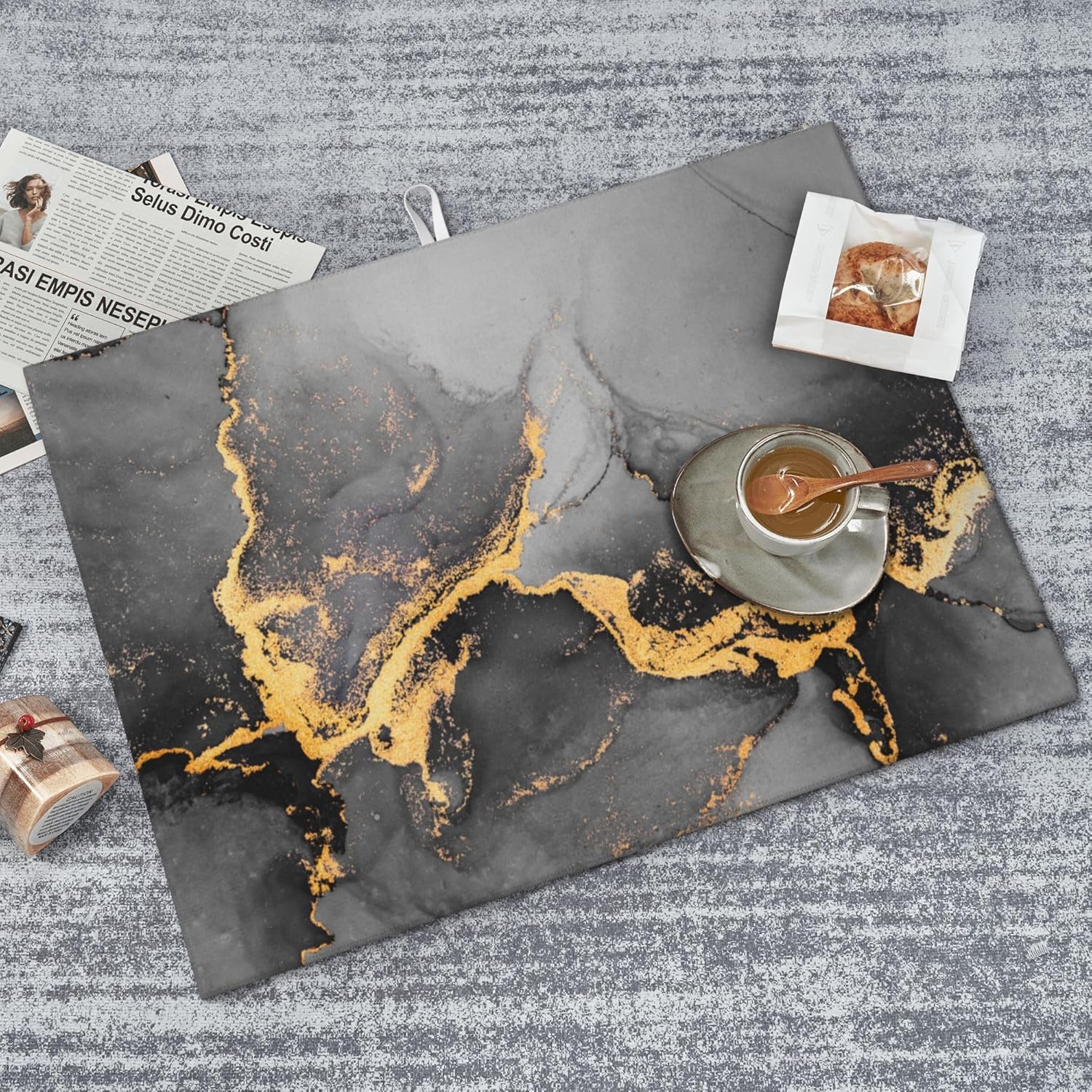 Black Gray Gold Marble Kitchen Drying Mat Abstract Modern Microfiber Dish Drainer Mat for Kitchen Counter Absorbent Reusable Washable 18x24 Inch