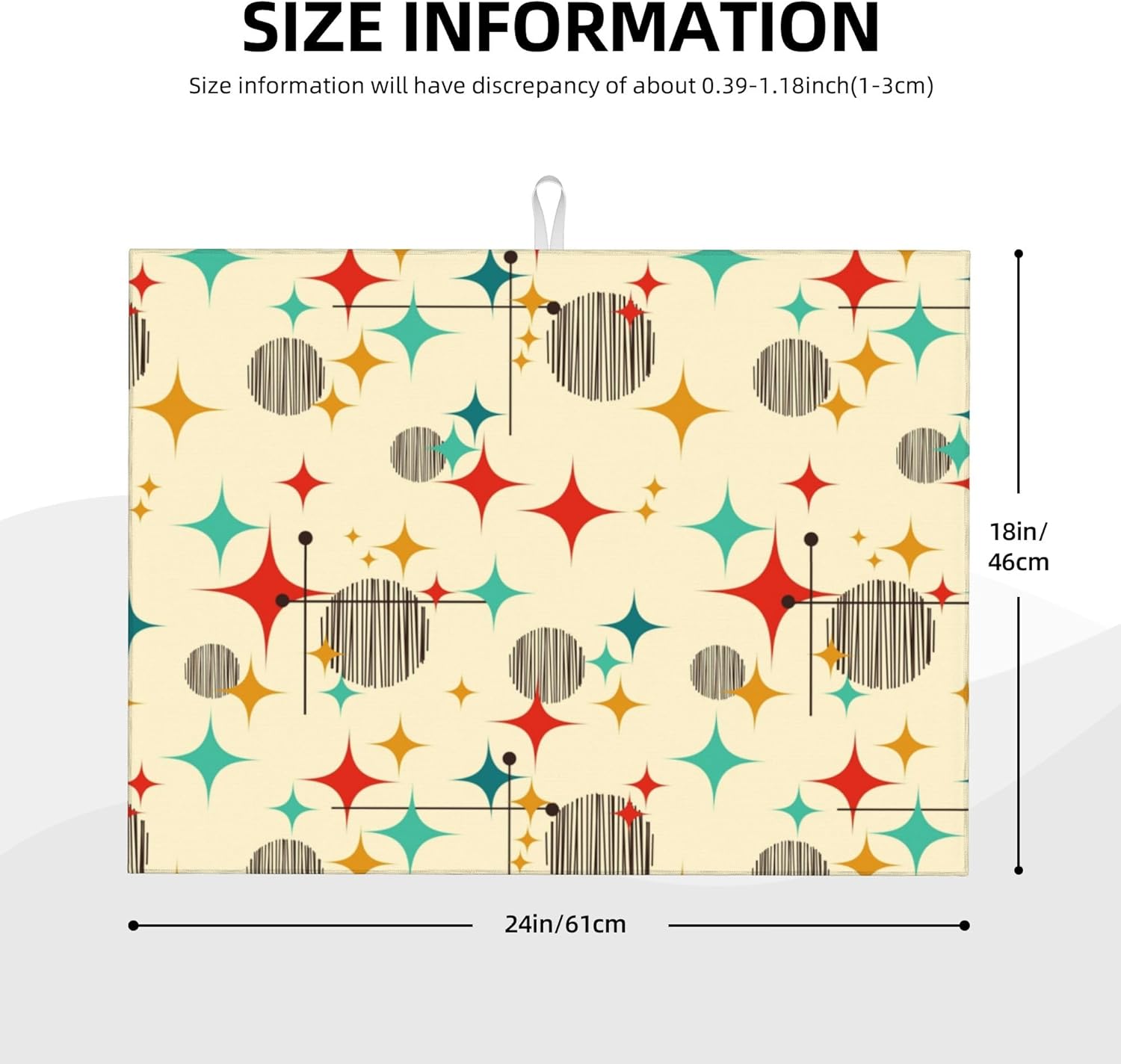 Mid Century Modern Atomic Retro Microfiber Dish Drying Mat for Kitchen Counter 18"x24" Yellow Dishes Pad Dish Drainer Rack Mats Absorbent Washable Reusable Kitchen Home Holiday Decor