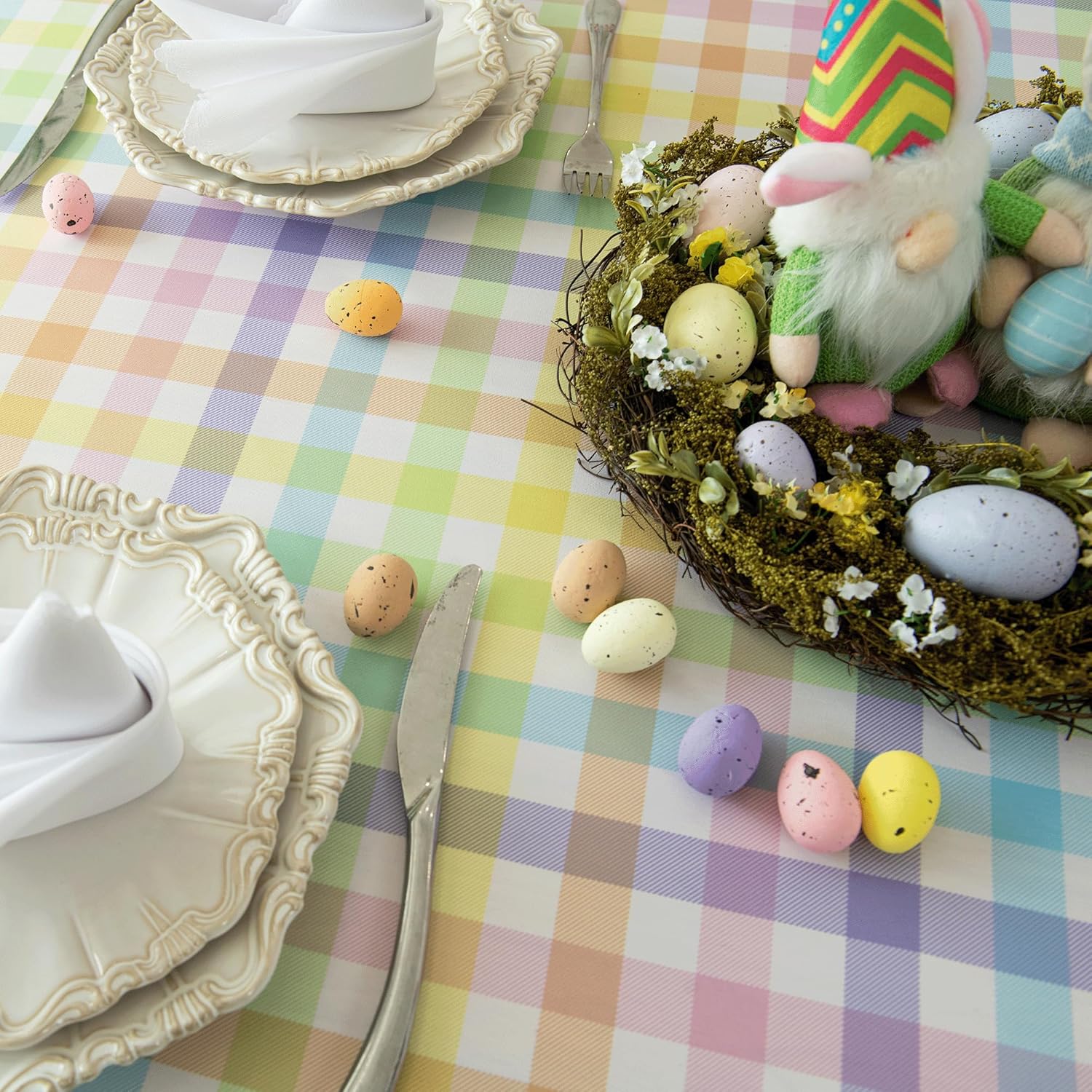 Waterproof Plaid Easter Tablecloth Fabric - Spring Square 58x58 Inch Classic Gingham Checker Holiday Table Cloth for Indoor Outdoor Use - Table Cover for Picnics, BBQs, and Parties