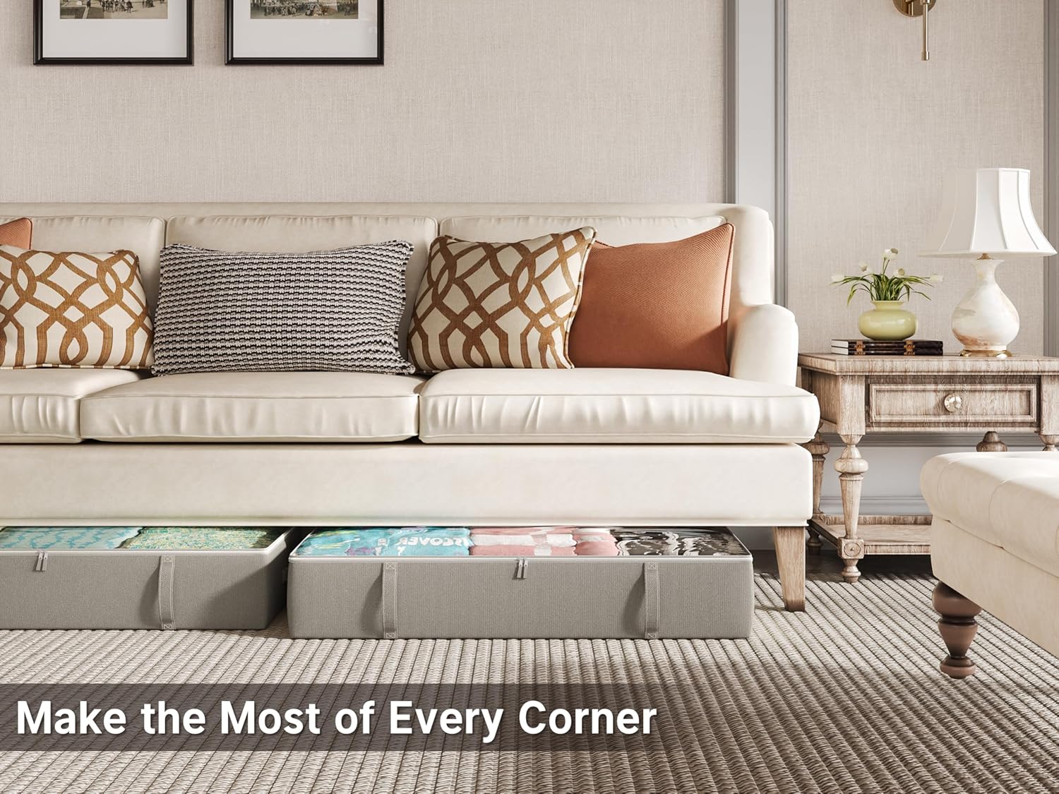 • Versatile Under Bed Storage Bins - 2 Pack of Under bed storage containers are designed for blankets and pillows, out-of-season clothes and shoes, books and toys, these storage containers have a sturdy construction and can handle all types of storage needs
