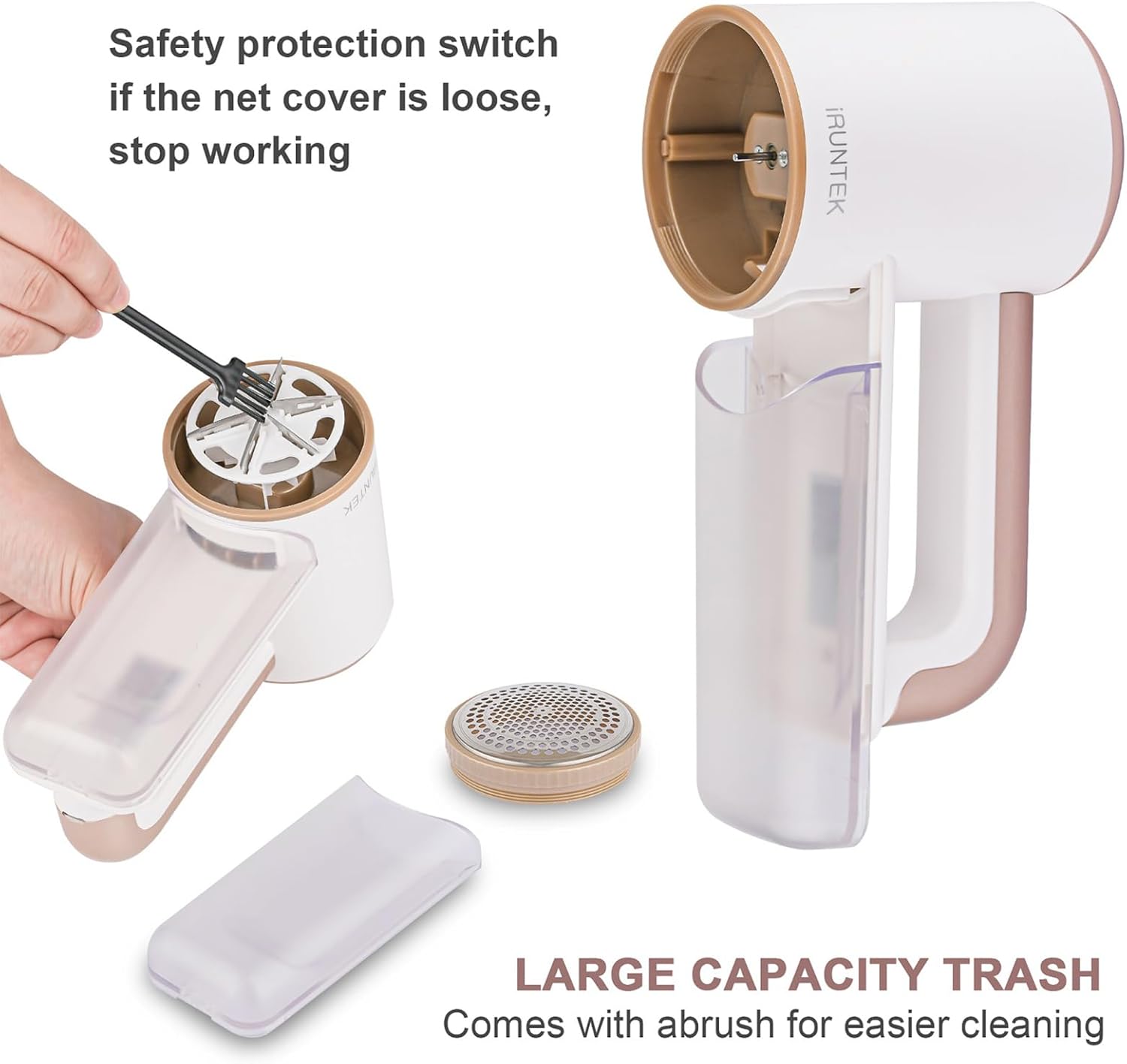 iRUNTEK Rechargeable Fabric Shaver, Electric Commercial Lint Remover with LED Display & Big Trash Box, 3-Speeds for Removing Fuzz and Pill from Clothes, Furniture, Sweater, Couch and Blanket, White