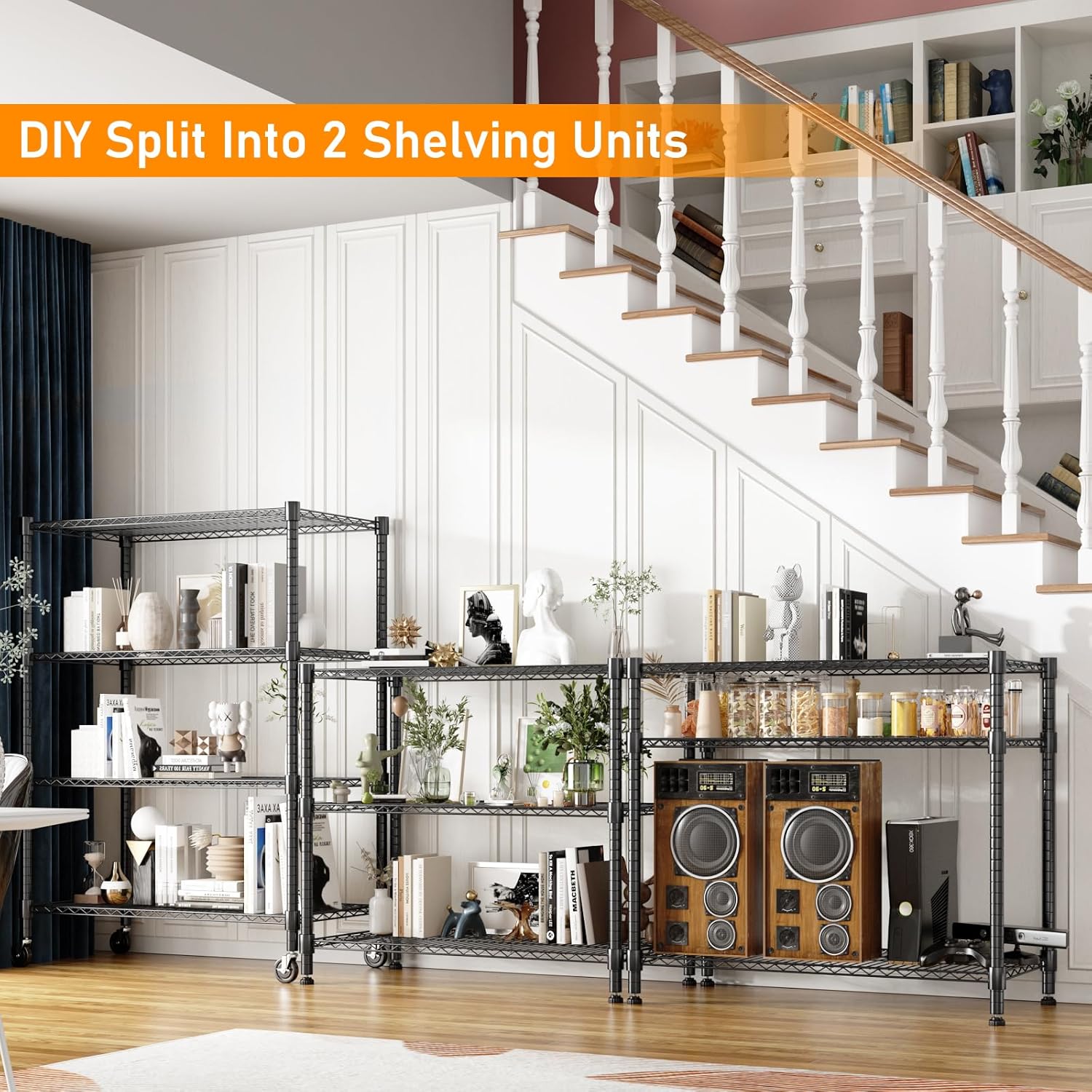 • 【ADJUSTABLE HEIGHT】Each layer of the wire shelf can be adjusted to match the height of your items, optimizing your storage space. Additionally, you can join two storage racks to form a wider unit, providing extra width to meet your needs. No matter your requirements, you can assemble a shelf configuration that fits just right