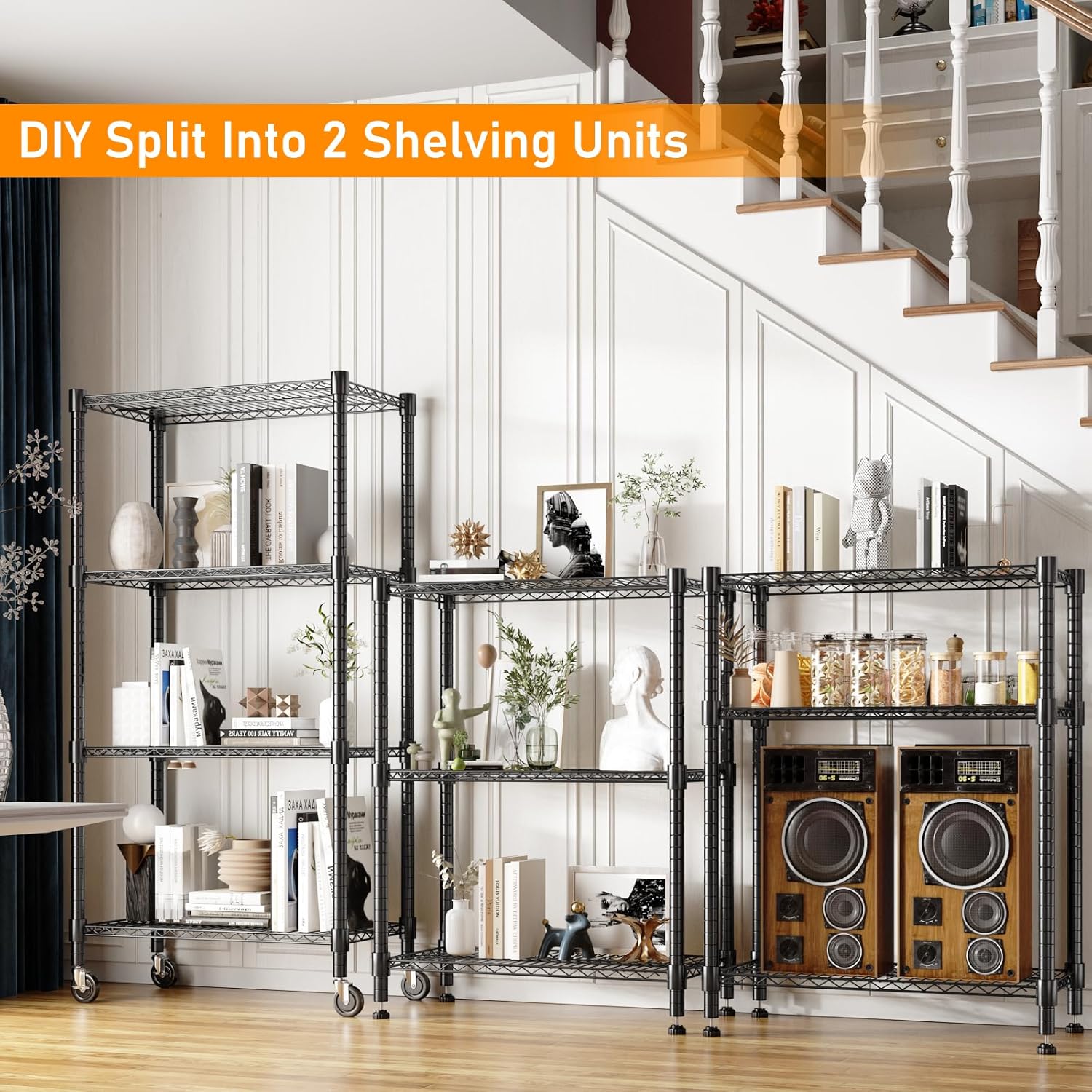• 【ADJUSTABLE HEIGHT】Each layer of the wire shelf can be adjusted to match the height of your items, optimizing your storage space. Additionally, you can join two storage racks to form a wider unit, providing extra width to meet your needs. No matter your requirements, you can assemble a shelf configuration that fits just right