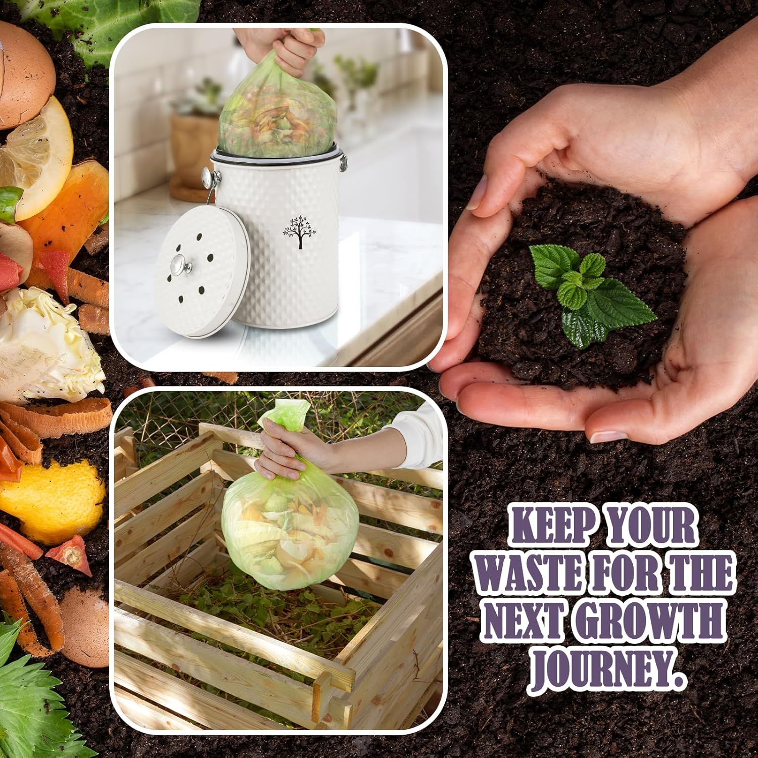 • 【ENVIRONMENTALLY FRIENDLY COMPOSTING】:The compost bin is the perfect odorless storage container for organic kitchen waste in your home.It will complement any kitchen decor.Put kitchen waste into outdoor organic fertilizer for composting and reuse. Not only does it make a stylish decoration, but it’s also functional and great for a greener environment.