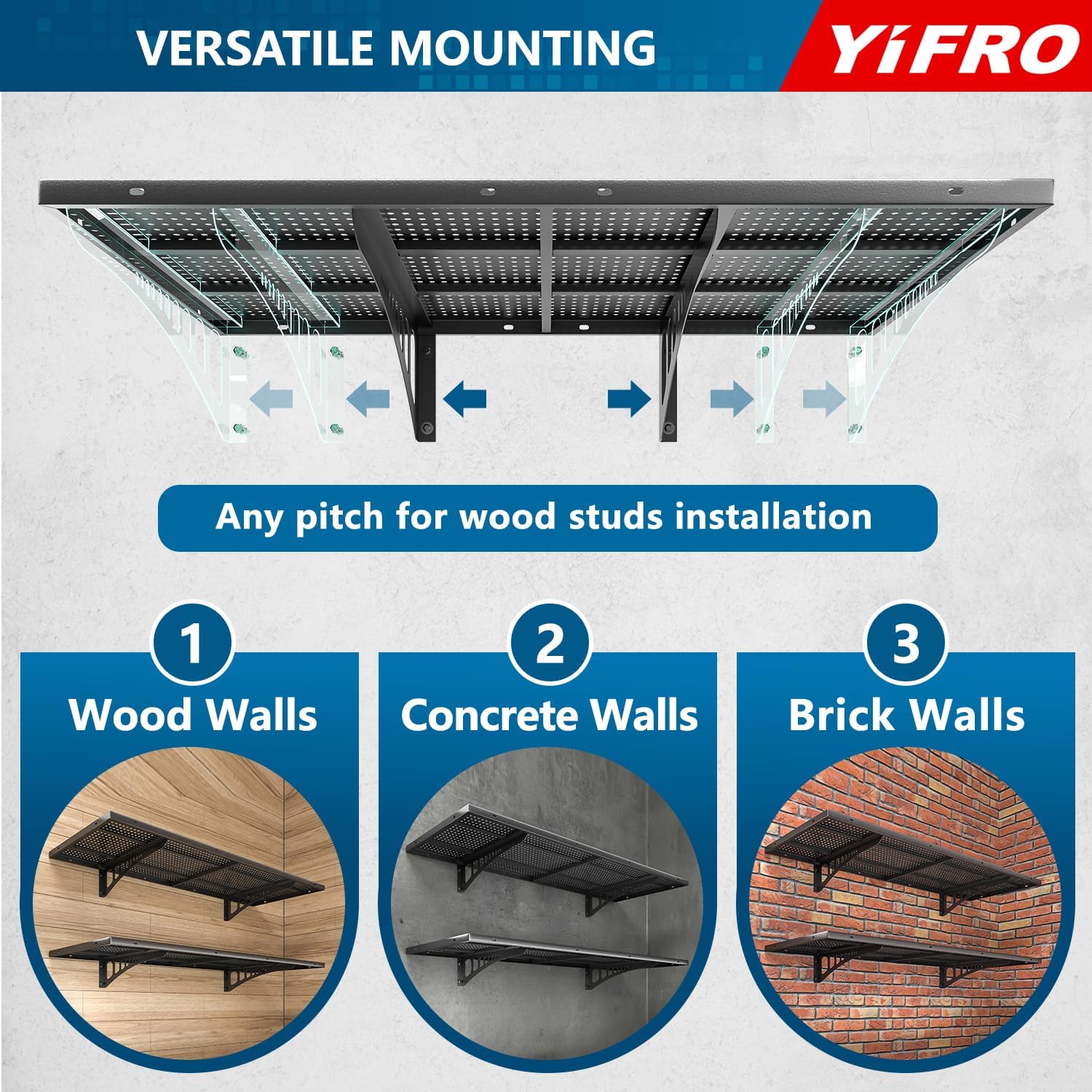 • ADJUSTABLE SPACING: YIFRO garage wall shelves is suitable for any wood post spacing, including standard 16'/18'/24'/32' spacing for installation.