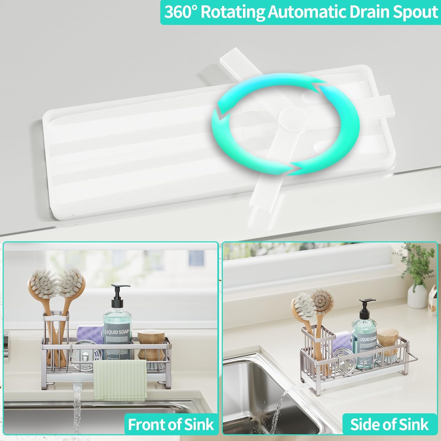 • [360° Rotating Drainage]: Tired of waterlogged counters? The 360° rotating drainage pipe on our sink caddy ensures your kitchen stays dry and clean, effortlessly directing water into the sink. The drain pipe is removable, so you can remove it for cleaning
