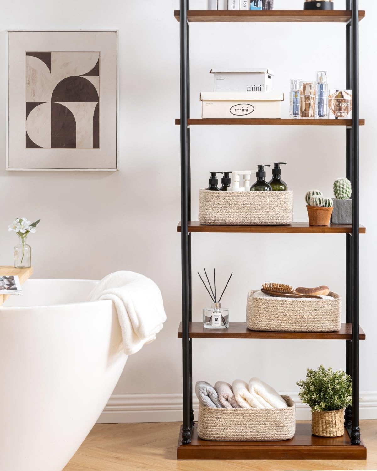 • [ Elegantly Designed to Match Any Décor ] Our small rope basket creates a minimalist appearance, and it adds a touch of warmth and texture to any room. The classic solid color design ensures seamless integration with your existing aesthetics, complementing any decoration. Perfect as decorative storage baskets for shelves, cabinets, and any open display space, making them a stylish and practical addition to any decor, enhancing the overall aesthetics of your room