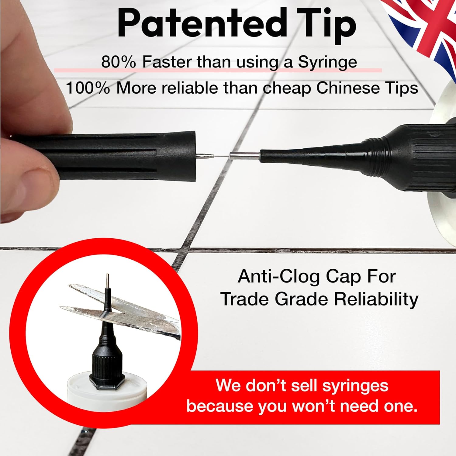 Precision 300ml from Floor-Fix Pro - Fix Loose Tiles - for Loose & Hollow Tiles, Wood, LVT & Laminate - Includes 1.9mm Syringe Tip - Adjustable to 6mm + Anti-Clog Performance (Pack of 4)