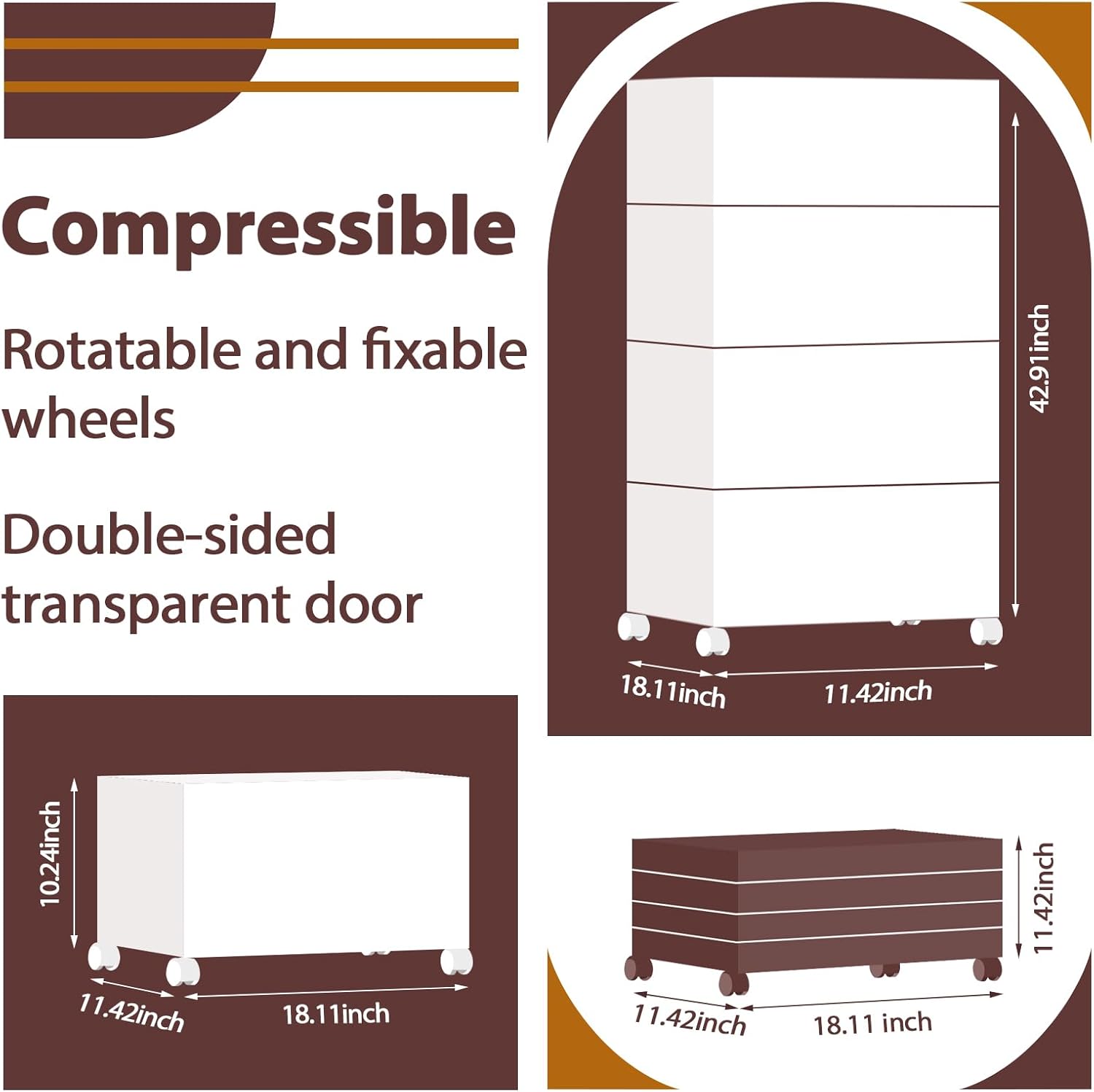 • Flexible and Convenient Design: The double-opening transparent door can be entered from the front and back, which is convenient for viewing and taking items, and is suitable for any space. The cabinet can be folded and has wheels for convenient storage and transportation, which enhances practicality.