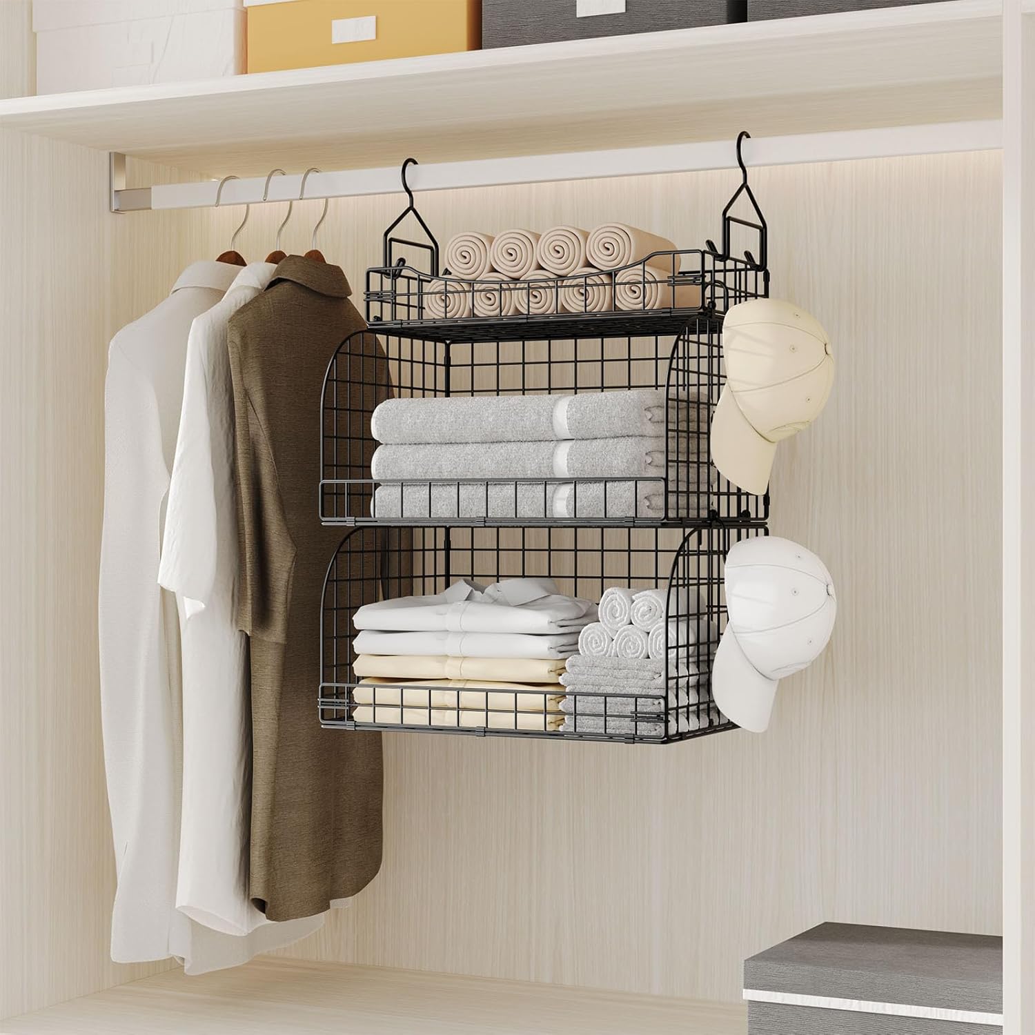 • [Open Metal Wire Basket for Easy Access]: The open design of these hanging shelves for closet makes it easy to view and grab your items quickly, improving convenience and efficiency in daily use