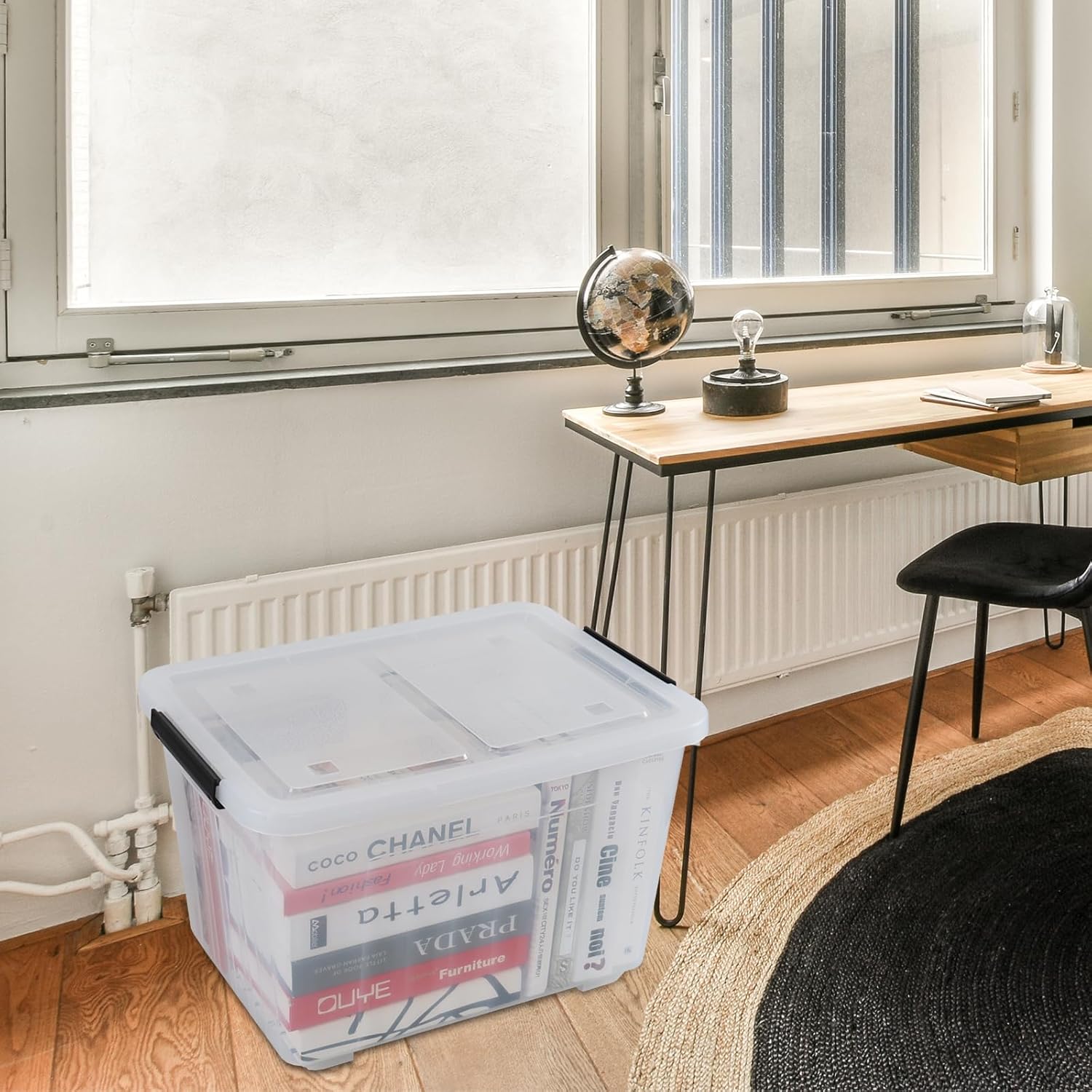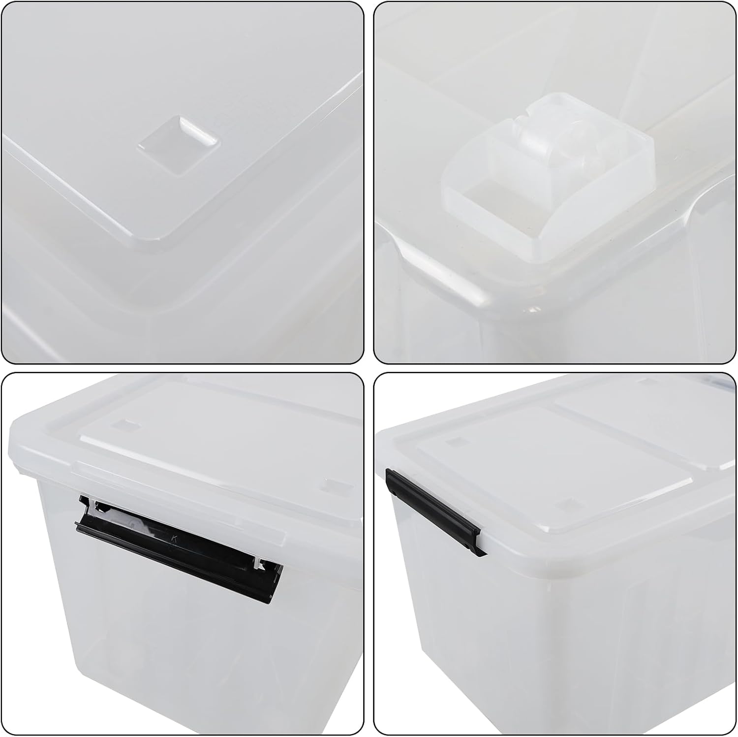 50 Quart Clear Storage Container with Lids and Wheels, 4-Pack Clear Plastic Latching Bins