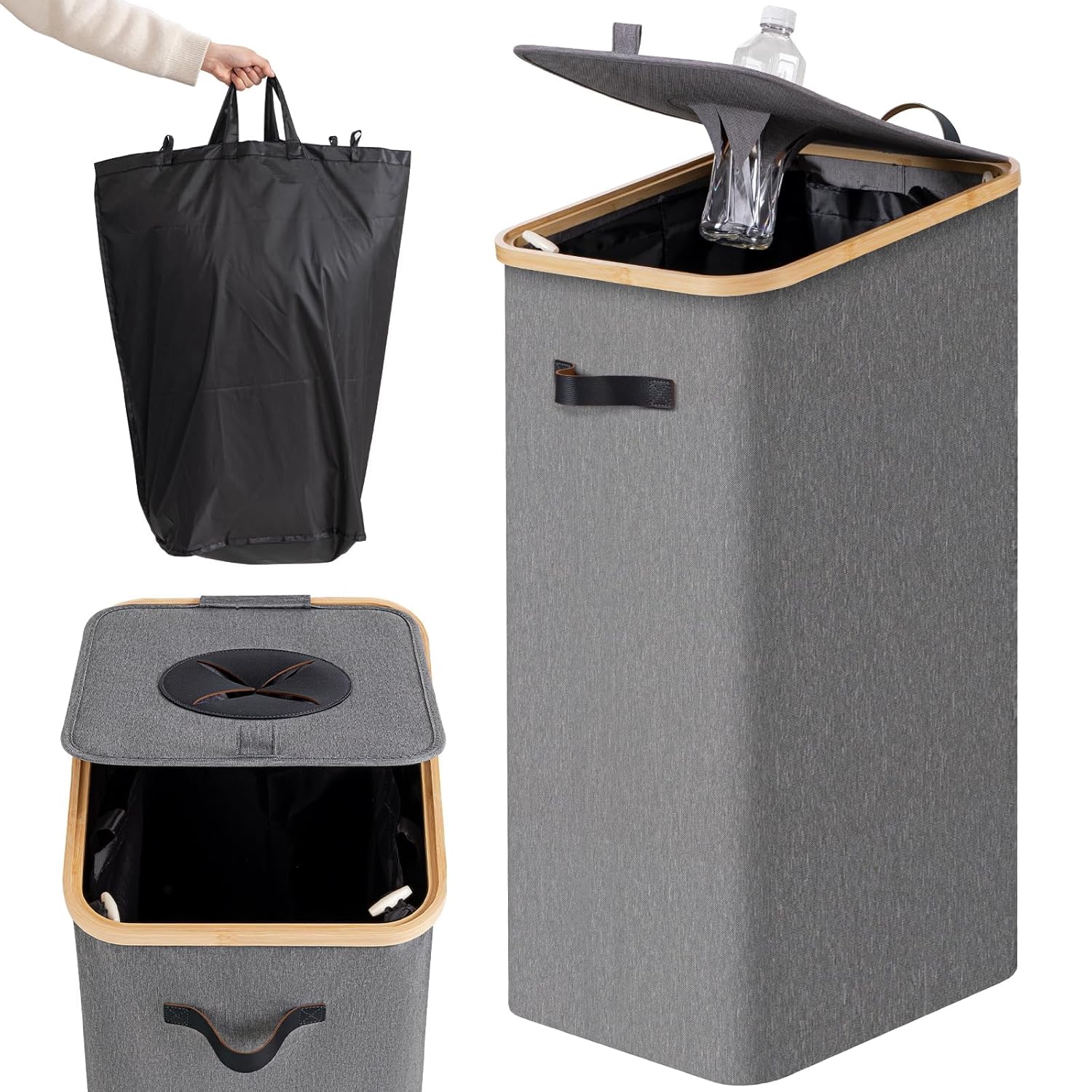 • PRACTICAL DESIGN - The high-quality bamboo frame and the first-class inner pockets ensure excellent stability of the kitchen recycling bin with a strong carrying capacity. The high front and low back make it easy to place and hide empty wine bottles to create a unique backdrop for your home