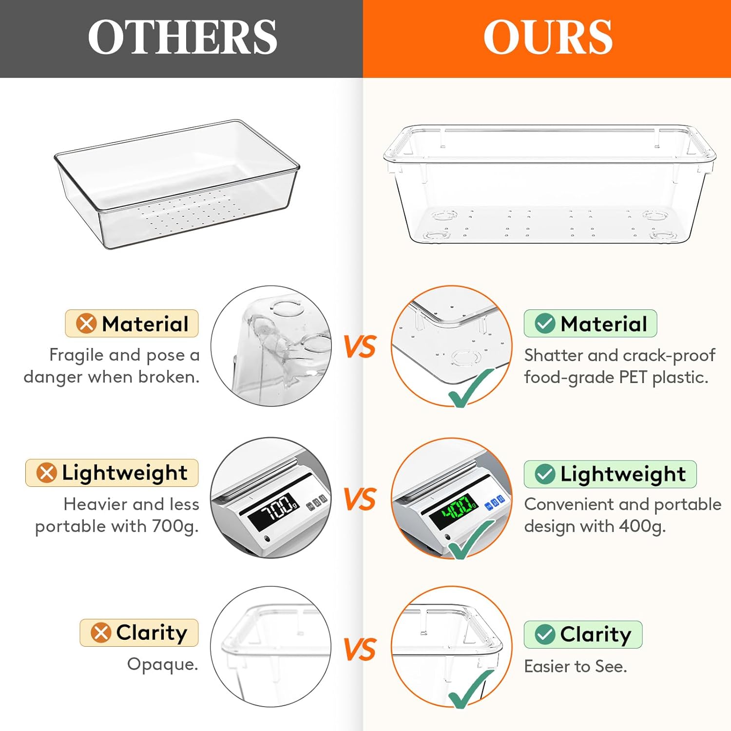 • Crystal Clear: Made of high-quality PET plastic with a crystal-clear appearance that enhances both aesthetics and functionality. Their transparent design allows for easy organization and quick retrieval of items