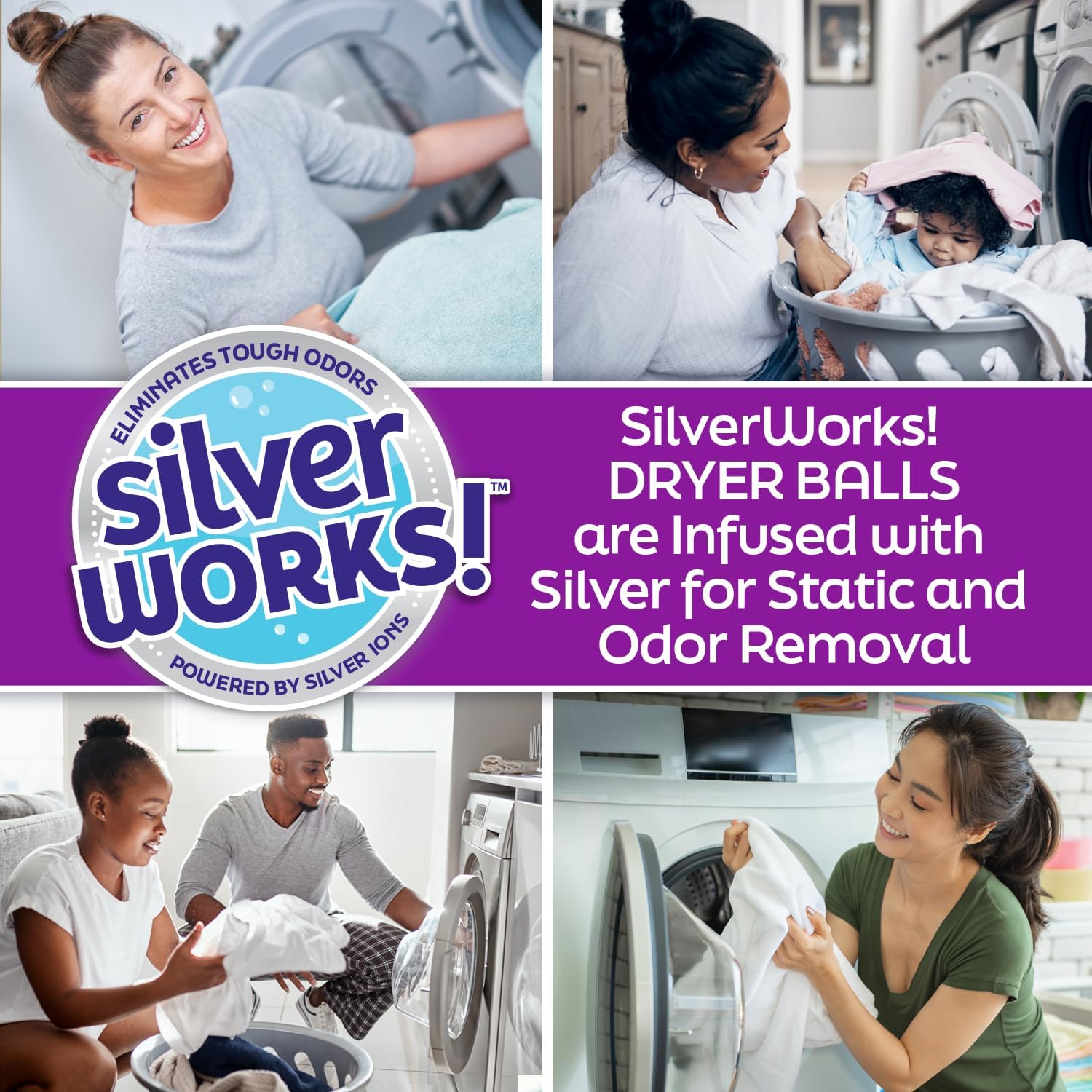 • REUSABLE FABRIC SOFTENER & STATIC REDUCER: SilverWorks! wool dryer balls prevent laundry from clumping together throughout the drying cycle reducing wrinkles, twisting, and tangling while gently softening fabrics and removing static.