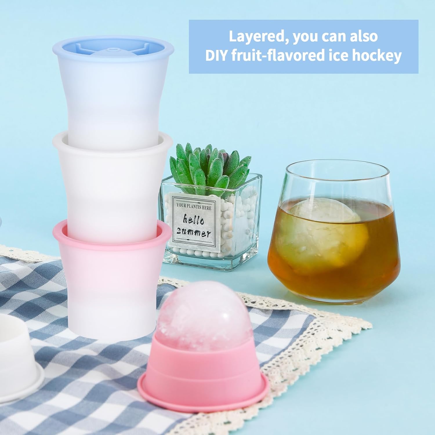 Round Ice Cube Molds 3 Pieces, Silicone Sphere Ice Mold Maker, Stackable Easy Release Circle Ice Cube Mold with Lids, Spherical Ice Makers with Lids for Whiskey, Cocktails, Bourbon, and Drinks