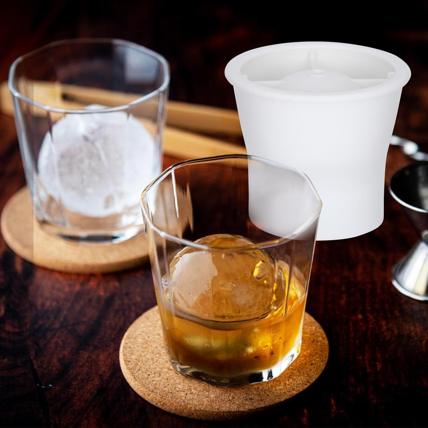 • Slow Melt Ice Cube Maker: Elevate your drink experience with our whiskey glass ice cube mold. Designed to create large, slow-melting ice spheres, the ice ball mold keeps your beverages perfectly chilled without diluting the flavor ensuring your drinks stay crisp and cool for longer