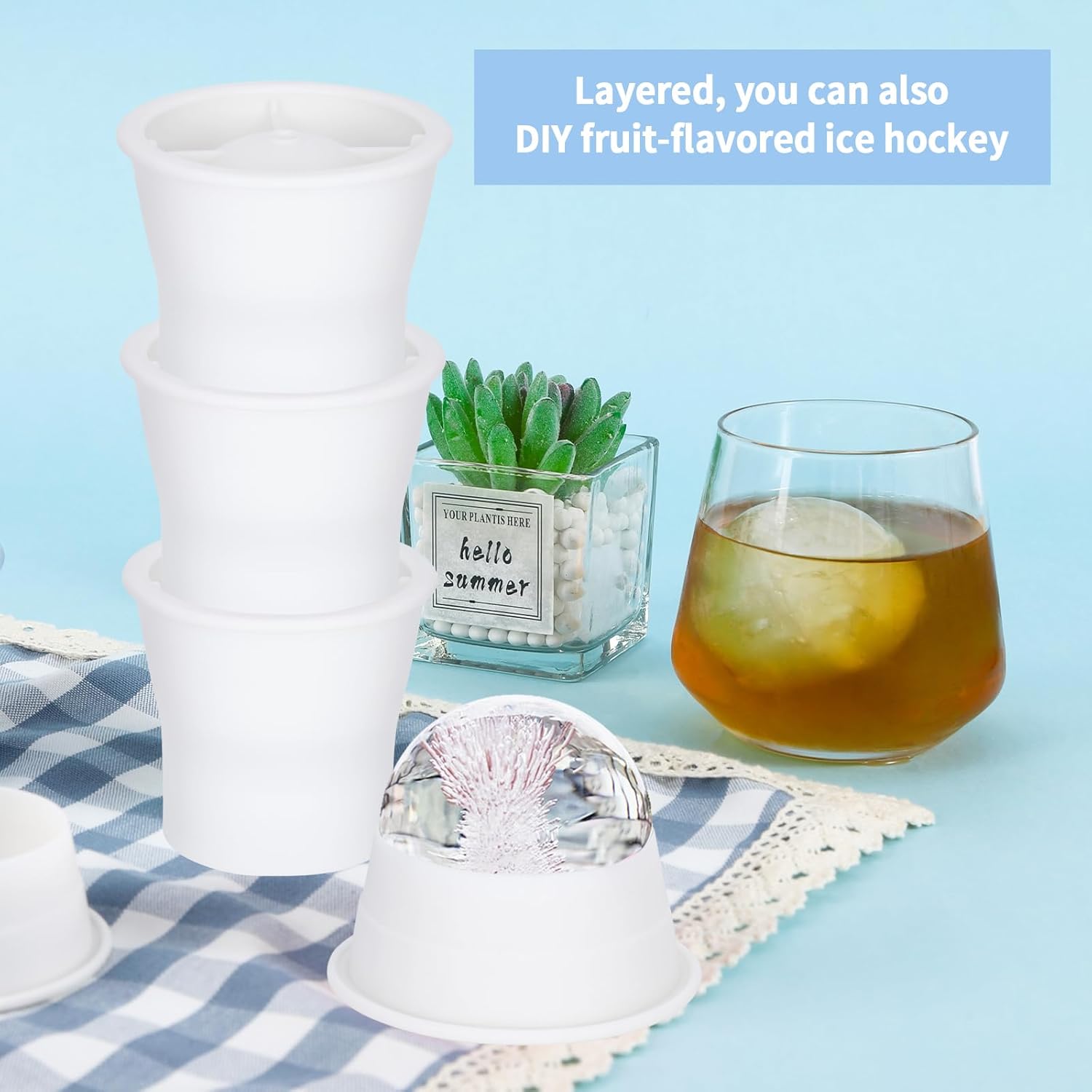 • Versatile Ways To Use: From drinks at home to entertaining guests at a party, our silicone round mold provides perfectly sized ice spheres for cocktails, whiskey, bourbon, lemonade, and more. The ice cup molds can also be used to create flavored ice rounds to add more depth and complexity to your favorite beverages