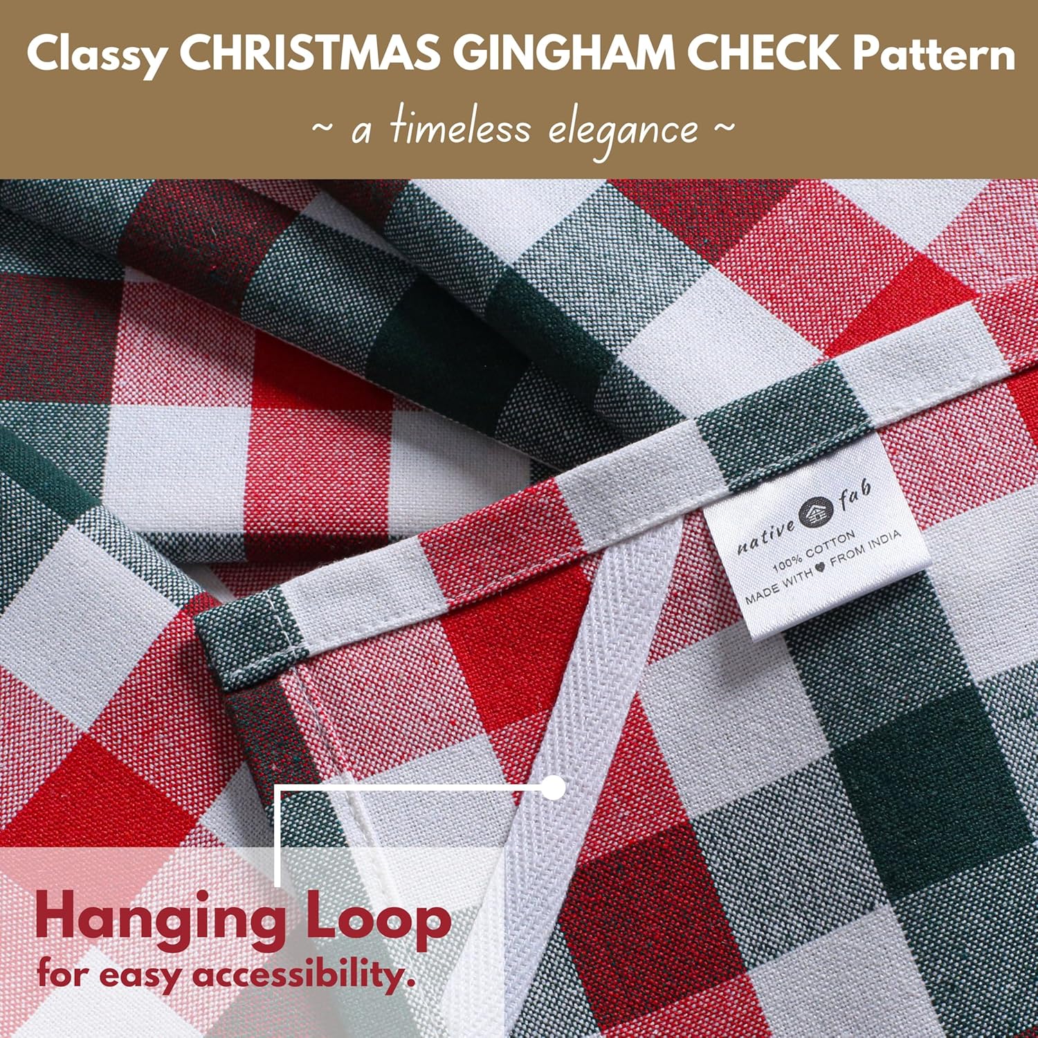 Native Fab Gingham Check Kitchen Towels 4 Pack 16x26 Inches - 100% Cotton, Soft, Absorbent Tea Towels & Kitchen Hand Towel for Drying, Cleaning & Reusable Dishcloths Set - Red, Green, White