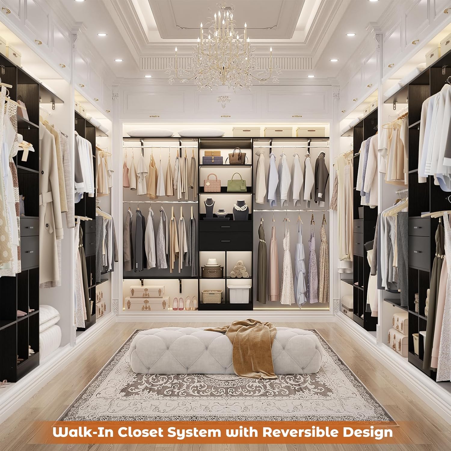 • Considerate Details - Featuring a special shallow drawer, it is easy to take or place your small items. Besides, the extra shelving and hanging robs are reversible. So you can set all the closet systems for your walk-in closet based on your usage habits.