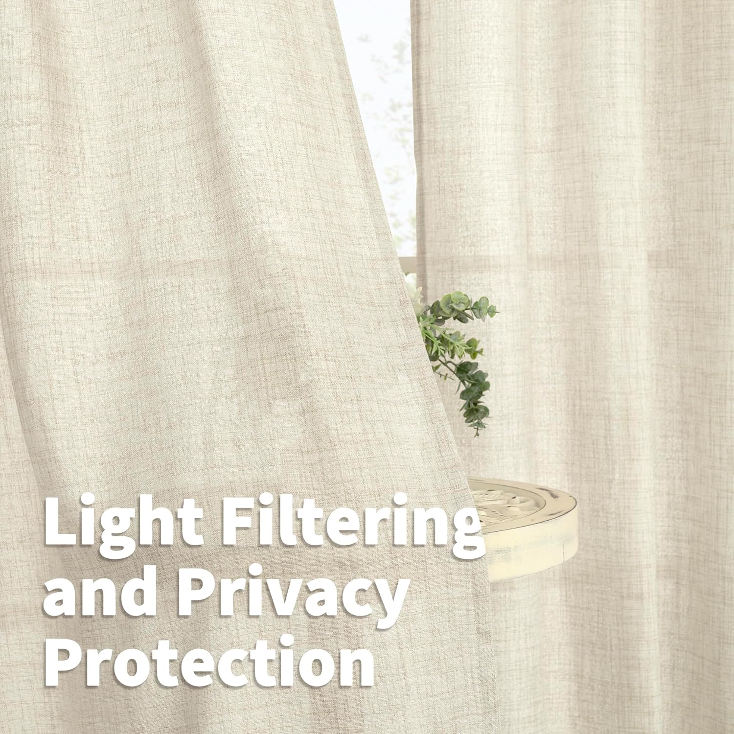 YoungsTex Linen Semi Sheer Curtains 84 Inch Length for Living Room 2 Panels Set - Boho Light Filtering Window Treatments Drapes with Rod Pocket Back Tab for Bedroom Dining, 52 X 84 Inch