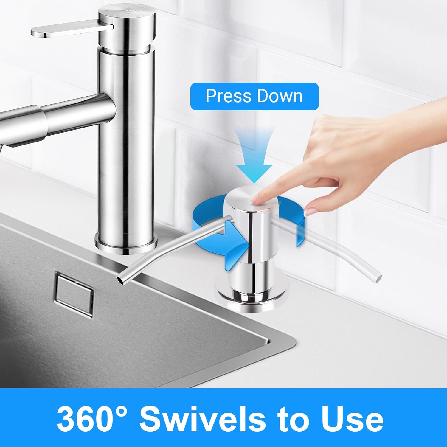 • No More Messy Refills: No more crawling under the sink. This sink soap dispenser comes with a 47”tube that goes directly into your large dish soap container, so you can skip the frequent refill process before.