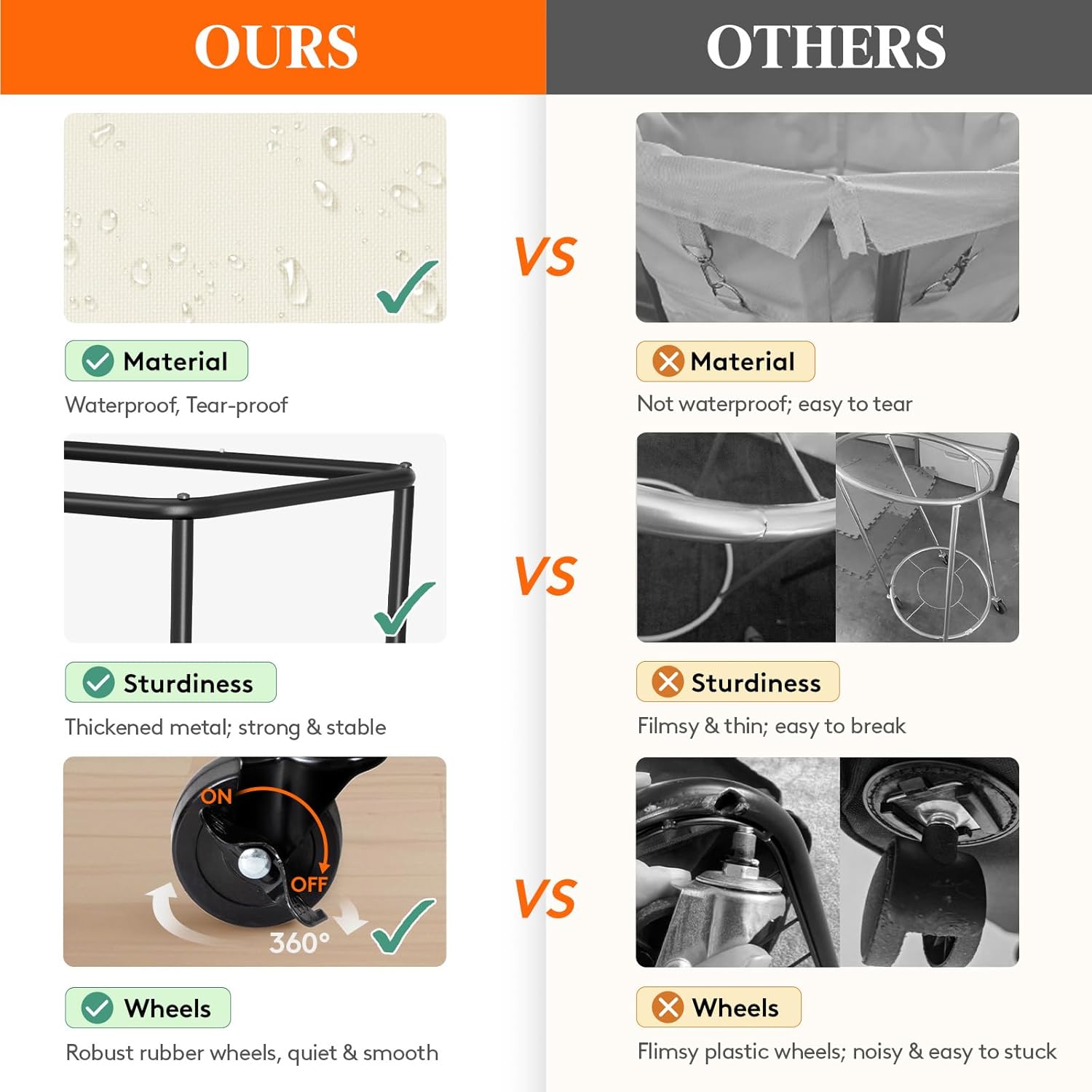 • Chic Design: With its minimalist style and neutral tones, rolling laundry basket combines ample capacity with an elegant appearance; perfect for any home or hotel décor, it effortlessly enhances your space's ambiance