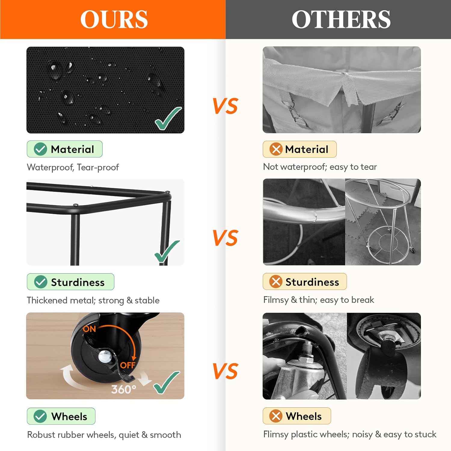 • Unmatched Durability: Crafted with a premium 0.6'' (1.6 cm) diameter steel tube frame, expertly treated for rust resistance; the laundry hamper is made from leather and tear-resistant Oxford fabric, featuring a waterproof lining inside; this laundry cart is built to last—your reliable companion for years to come