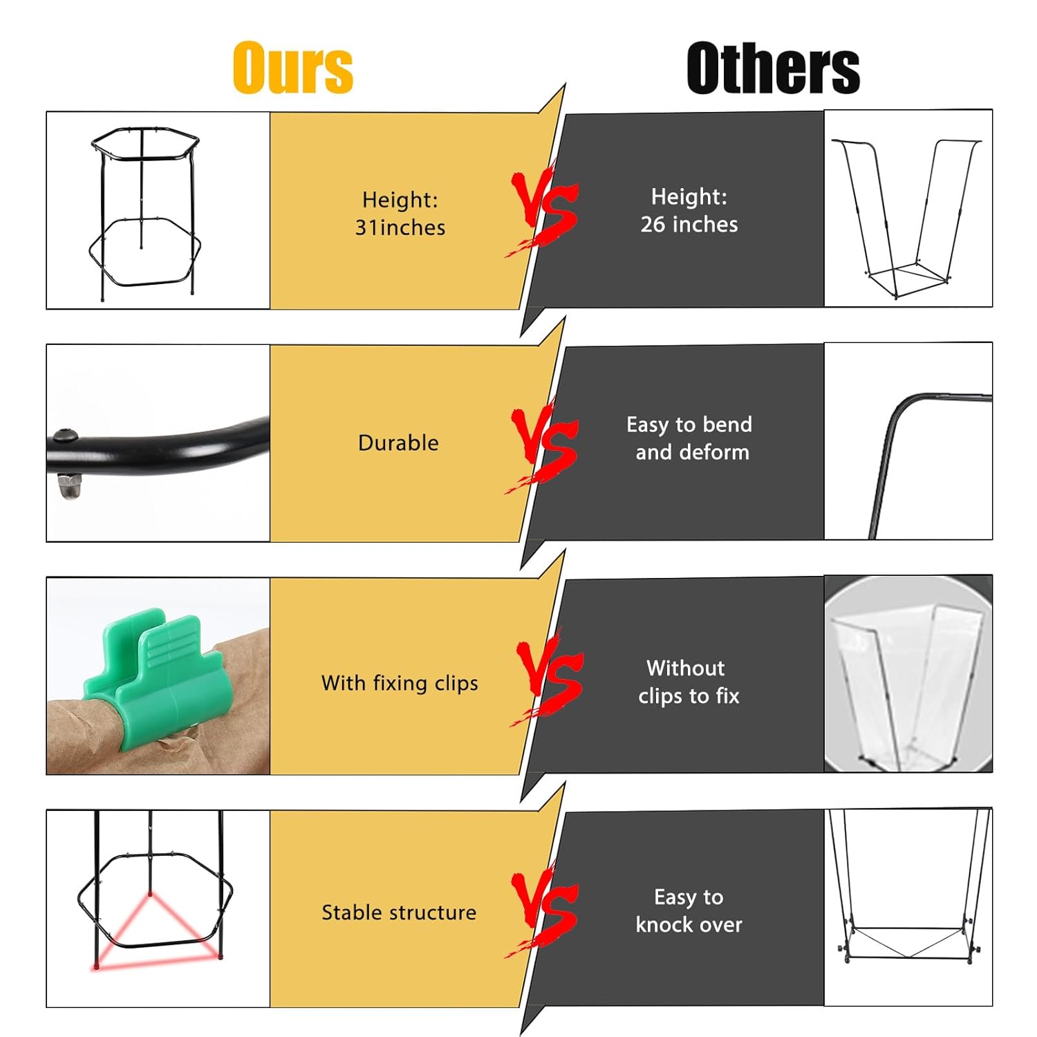 • 【Keep it Clean】Say goodbye to messy outdoor waste disposal with this reliable leaf bag holder for yard work. Garbage holder allows use for simple collection of leaves, yard waste, and recycling while keeping trash bags open for easy disposal.