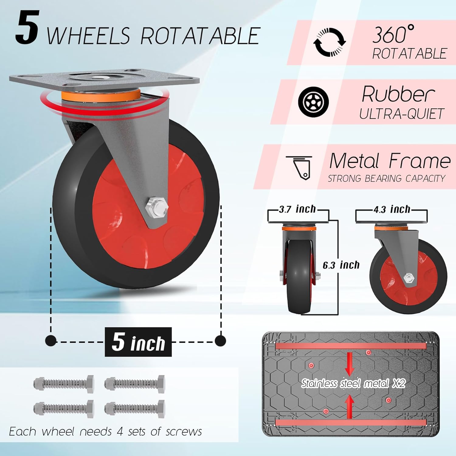 • 【Wider Platform】 Size: 43.3" x 25.5" , gross weight: 58lbs. Heavy-duty utility cart's large platform to load more goods. If you find missing accessories after receiving the goods, please contact us in time, our customer service team will provide you with satisfactory service. Accessories: 5*wheels, 1*small wrench, matching screws