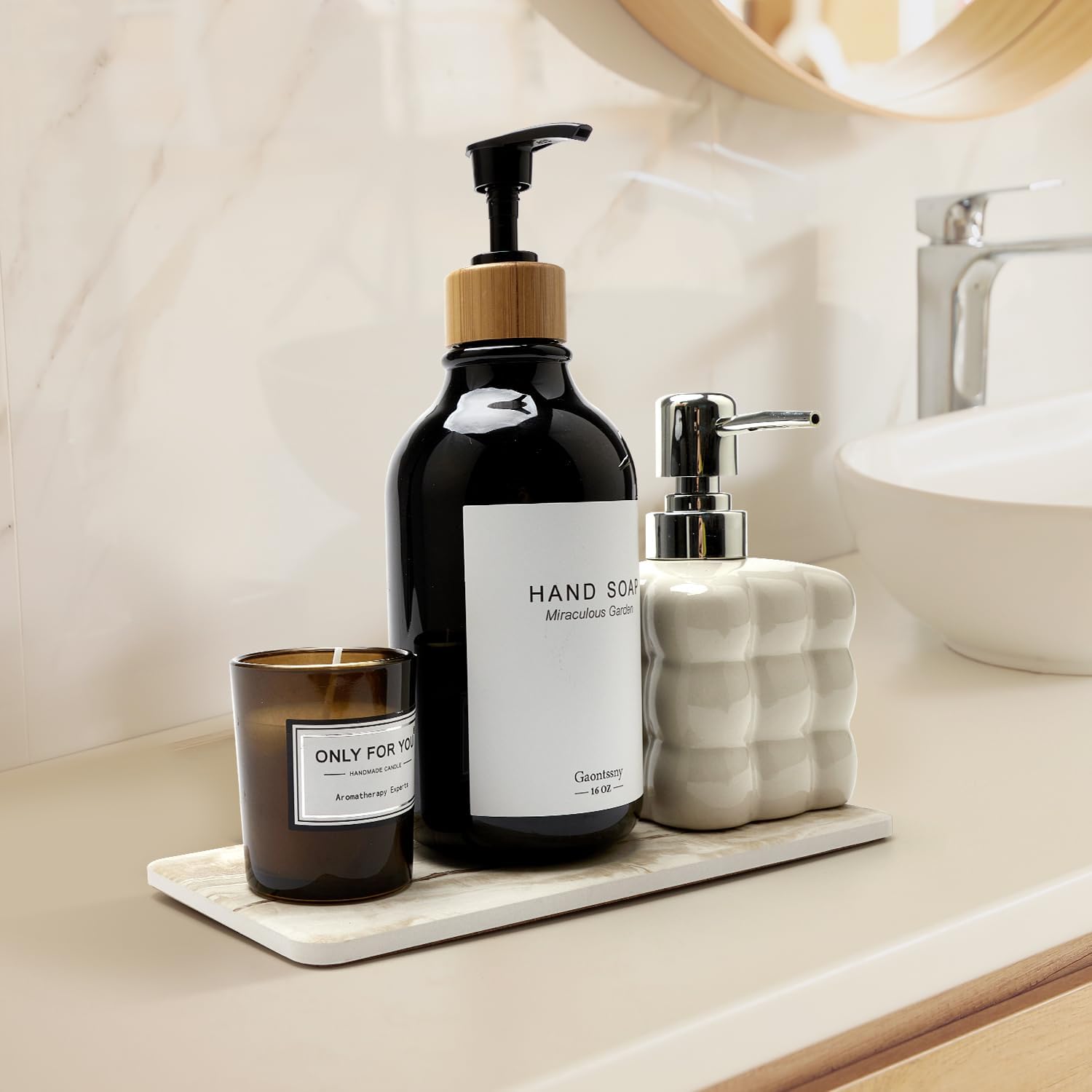 • WIDE RANGE OF APPLICATIONS: The marble soap tray is versatile enough to use in the kitchen or bathroom for hand soap, cups, soap bottles, pump bottles, dish sponges, toothbrush holder, make-up bottles. Water is absorbed immediately, no more mess!